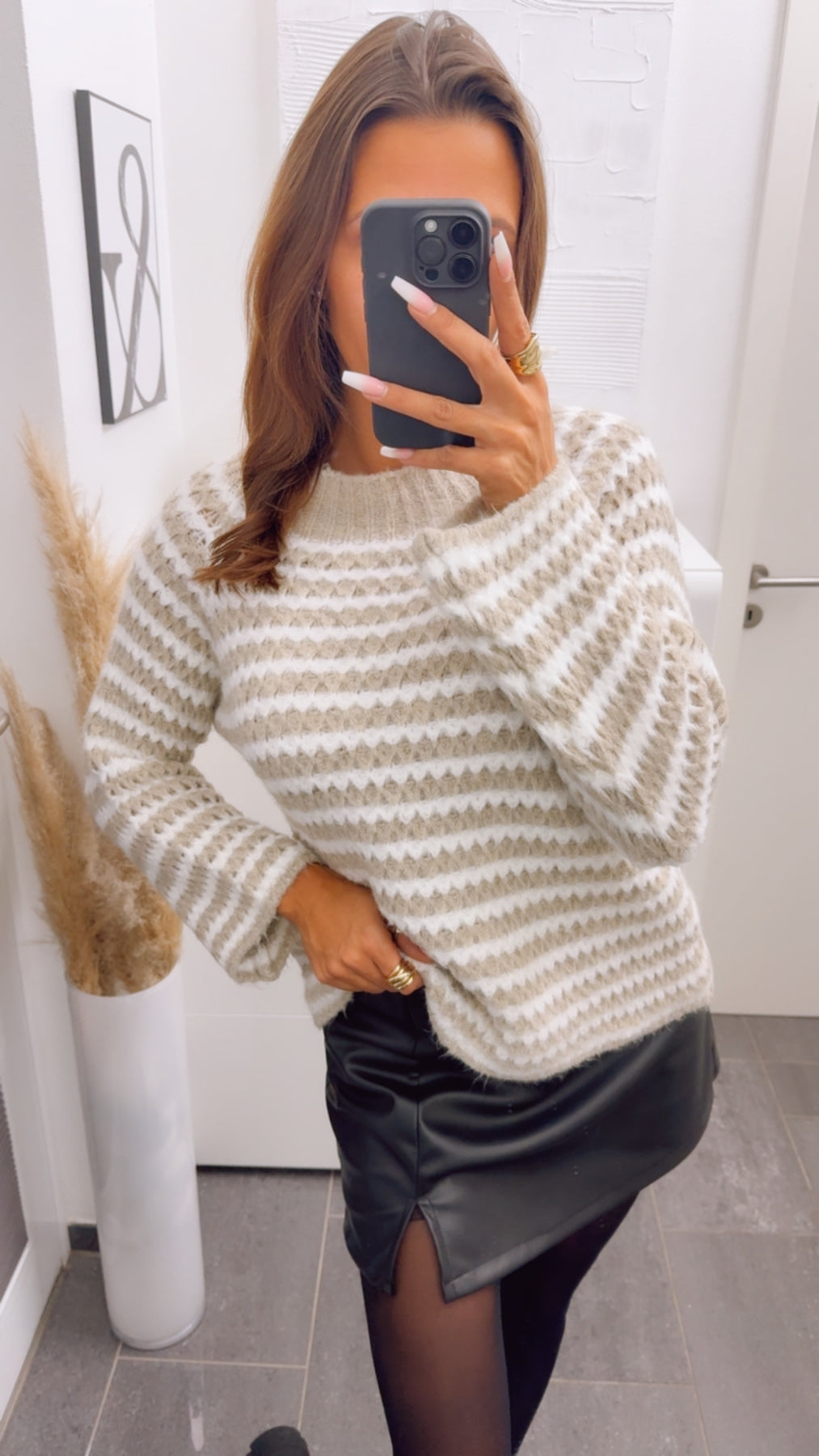 ausgefallener Strick Pullover mit Streifen / creme - beige Art. 12633
