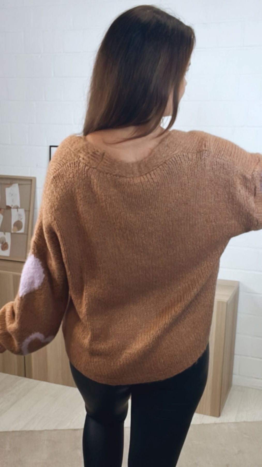 HERZEN Cardigan mit bunten Knöpfen / camel - flieder Art. 12535