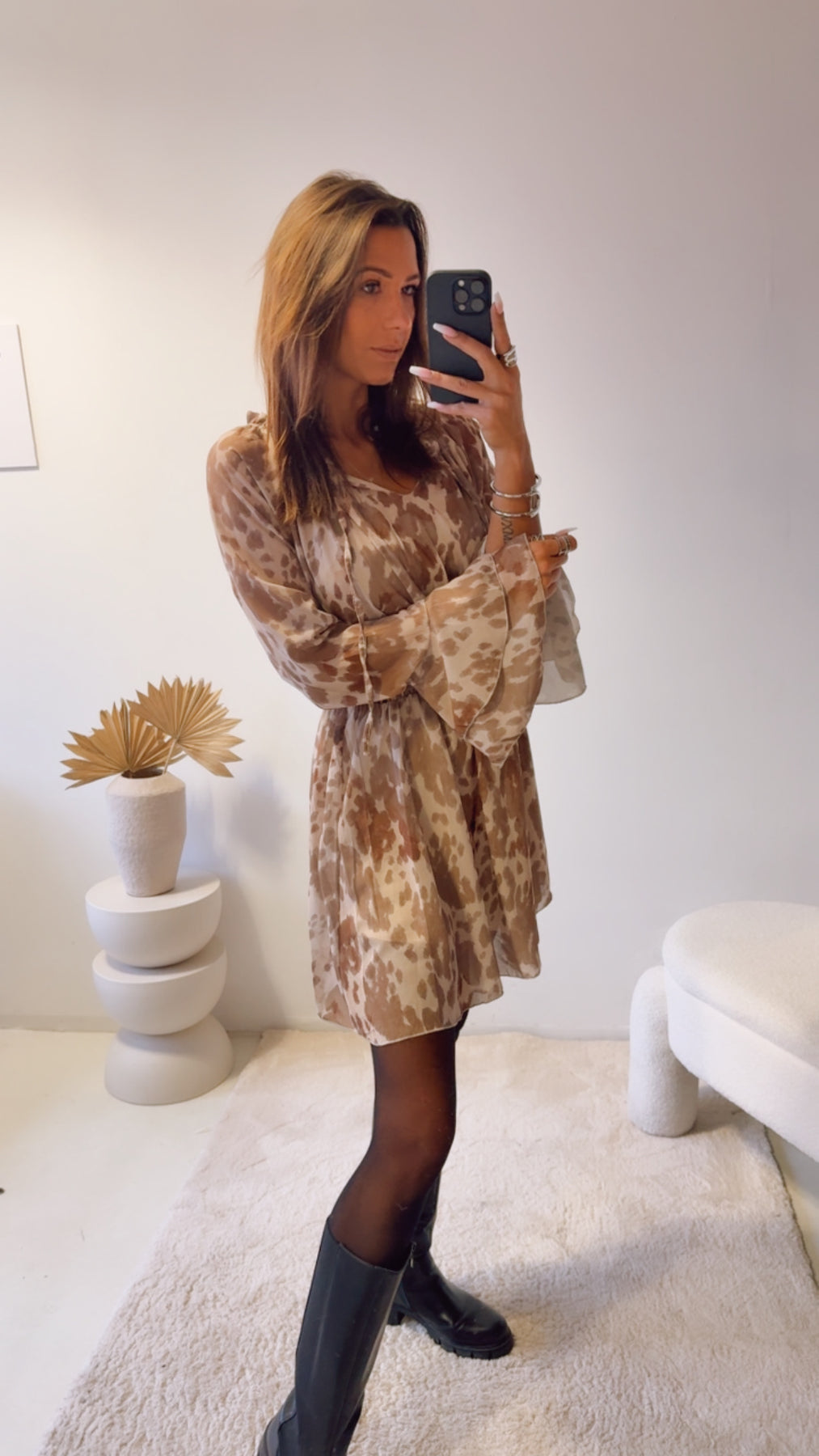 leichtes Kleid im ausgefallenen Muster / camel - creme Art. 13185