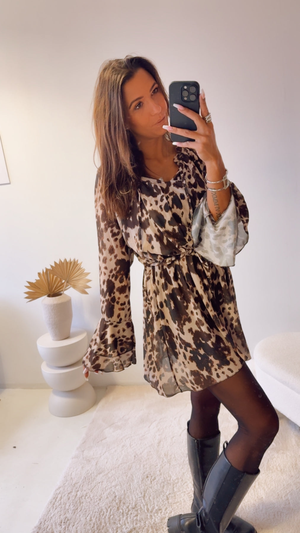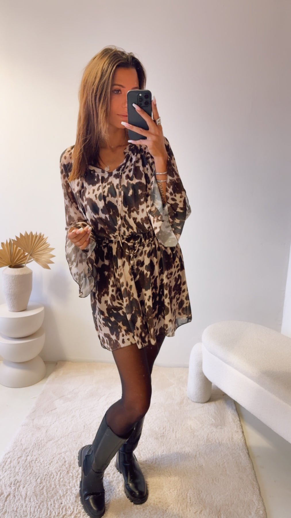 leichtes Kleid im ausgefallenen Muster / schoko braun - creme - schwarz Art. 13186