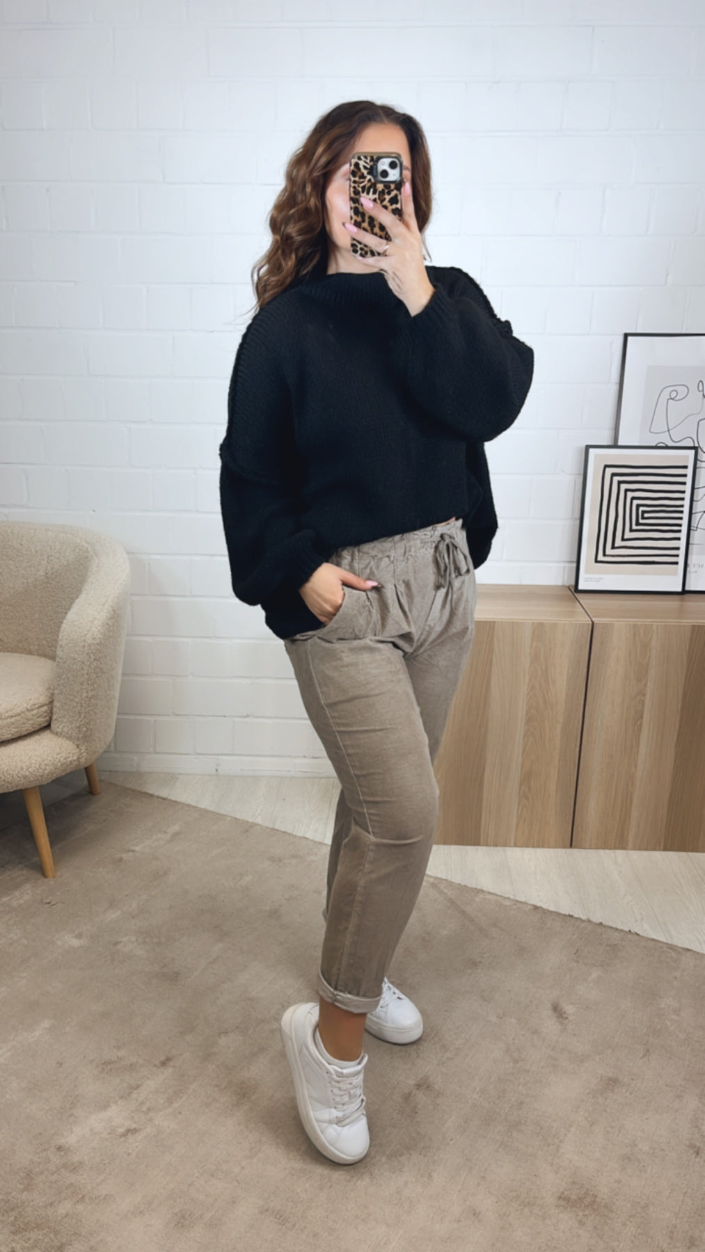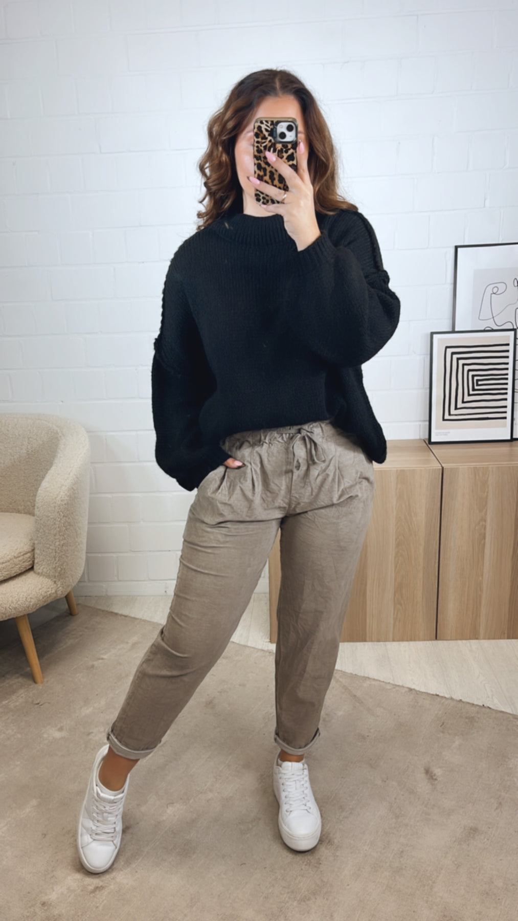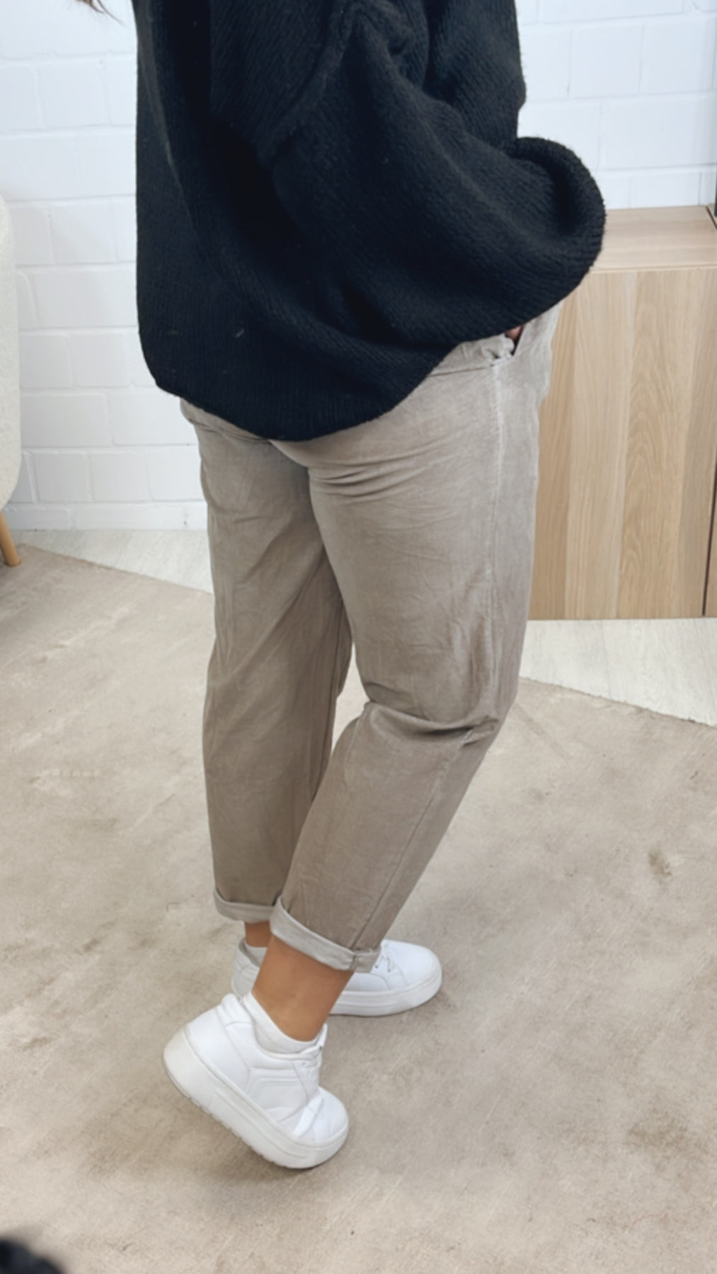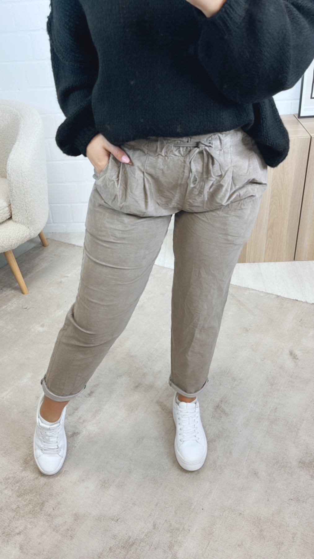 lockere Knitter Optik Hose im Velours Look / taupe Art. 12858