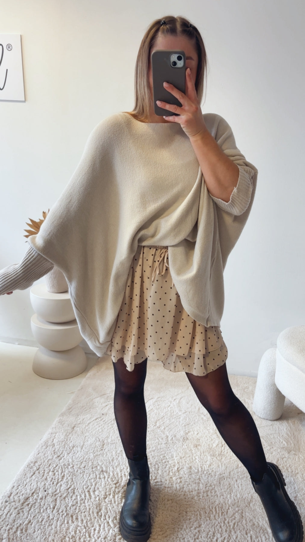 Die meisten unserer Kleidungsstücke sind in Einheitsgrößen verfügbar und passen somit zu jeder Figur.