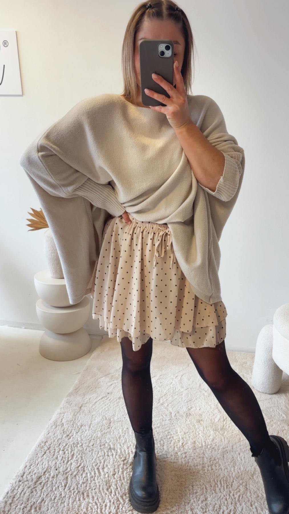 PUNKTE leichter Rock / creme - braun Art. 13140