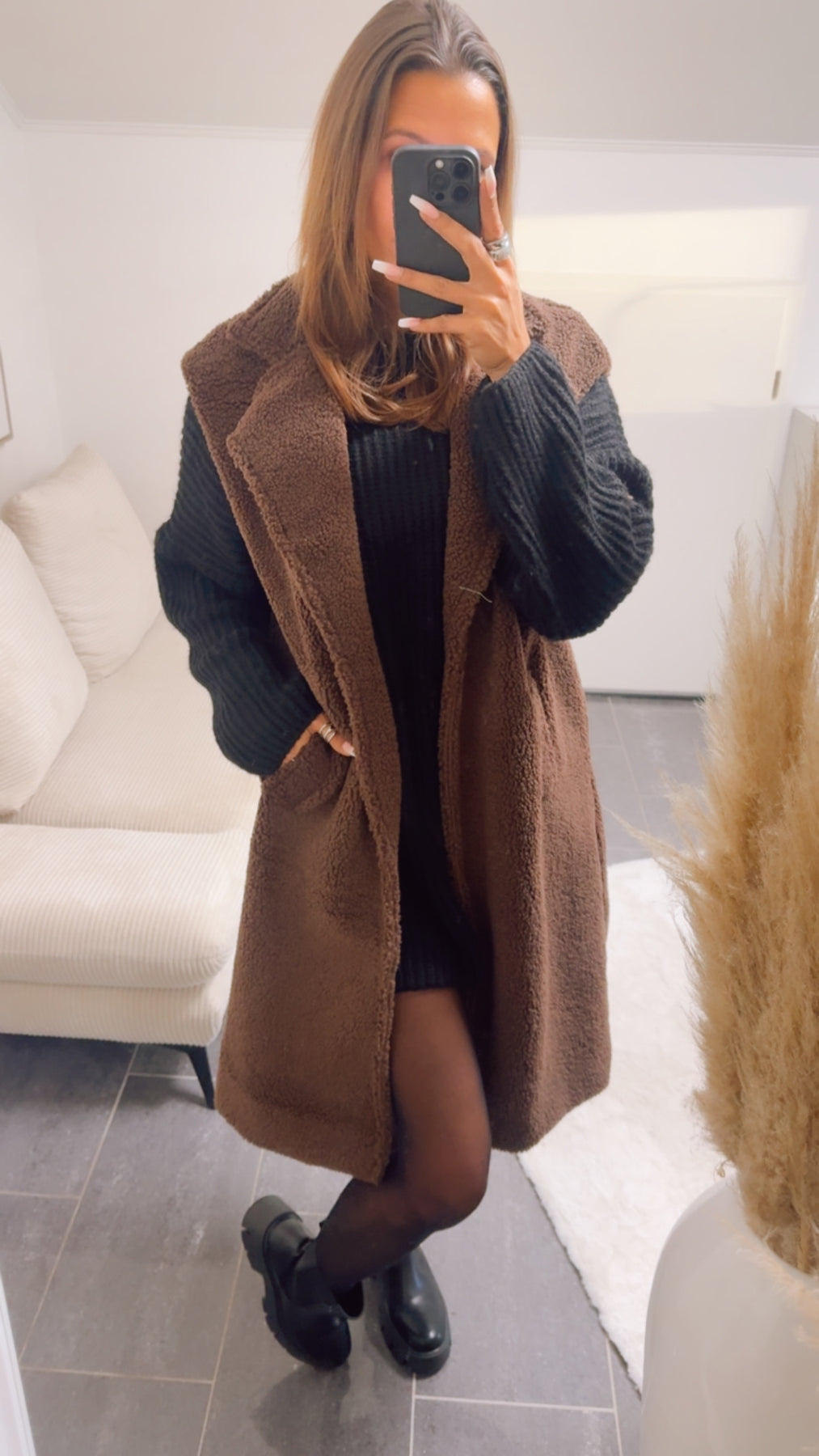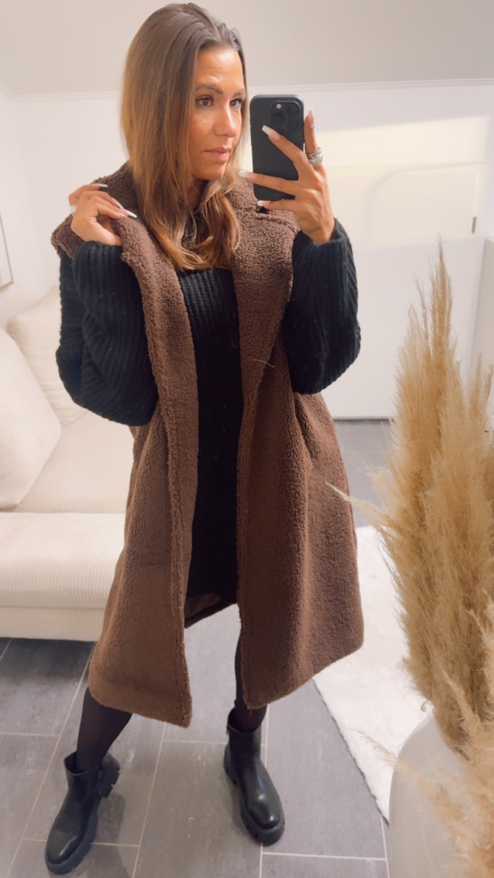 Welch ein süßer und schöner Anblick: diese tolle Weste im Teddy-Look ist ein absolutes Himguckerstück und must-have für cozy Outfits im Herbst und Winter. Sie wird offen getragen und hat zwei Eingriffstaschen. Durch ihren oversize-Schnitt ist es absolut möglich, dickere Pullover unter ihr zu tragen und kombinieren.