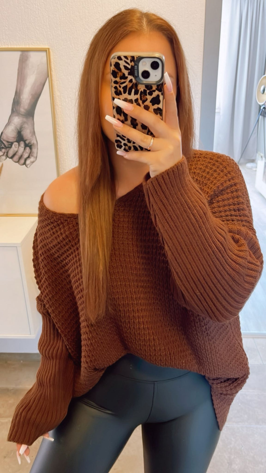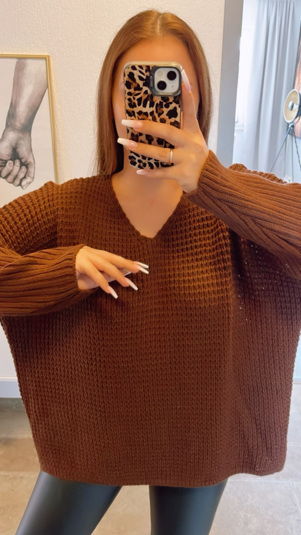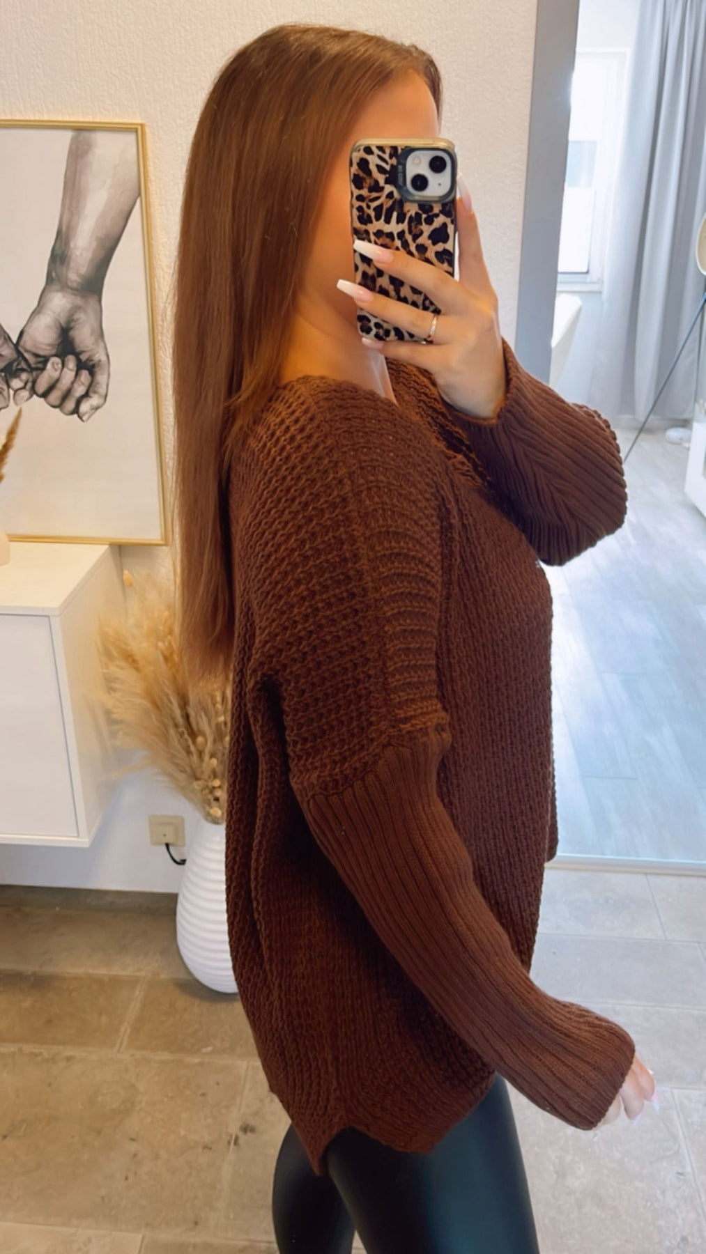 grober Strick Pullover, engere Ärmel, V-Ausschnitt / schoko braun Art. 12416