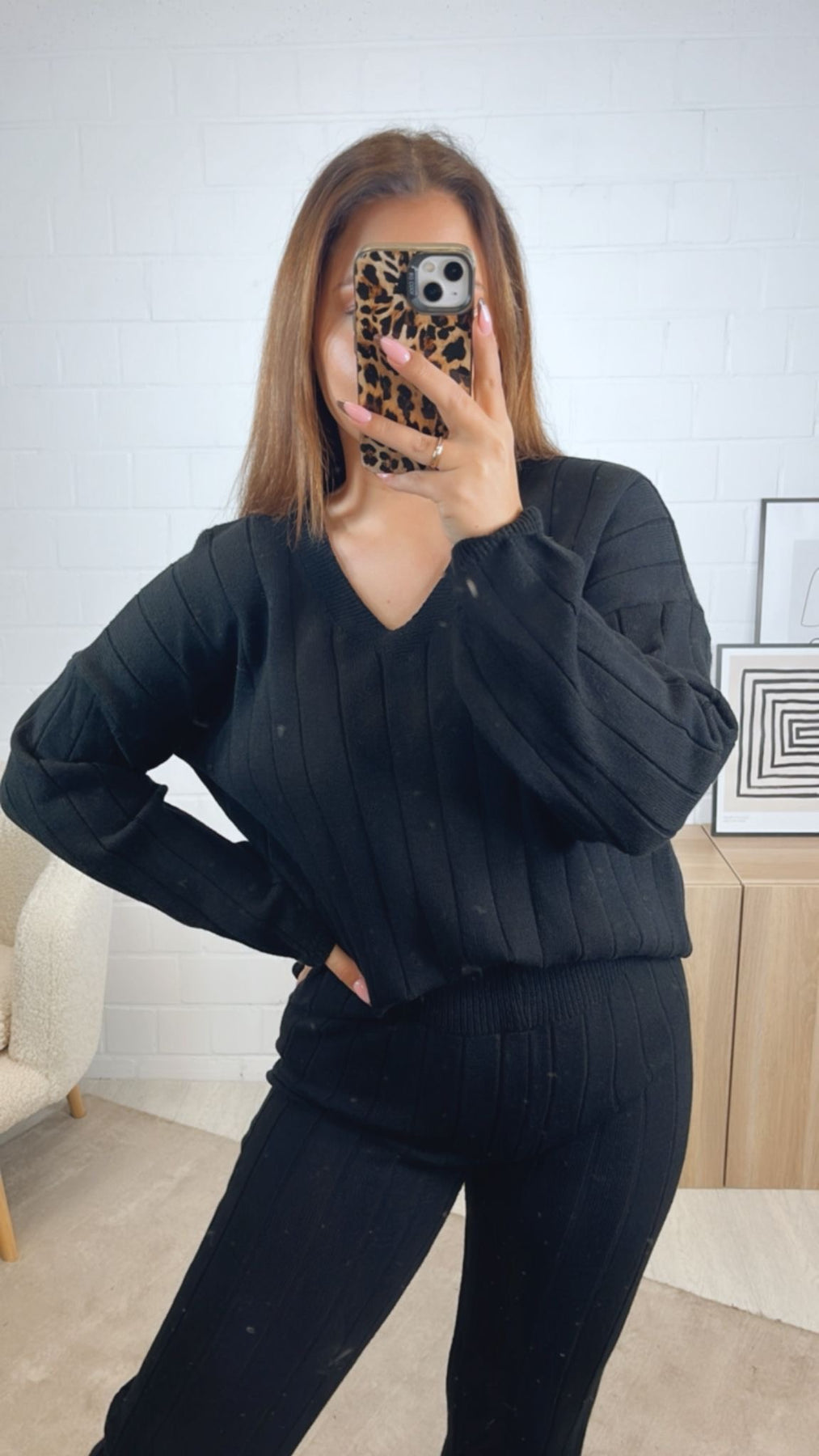 Strick Zweiteiler aus Pullover und Hose / schwarz Art. 12845