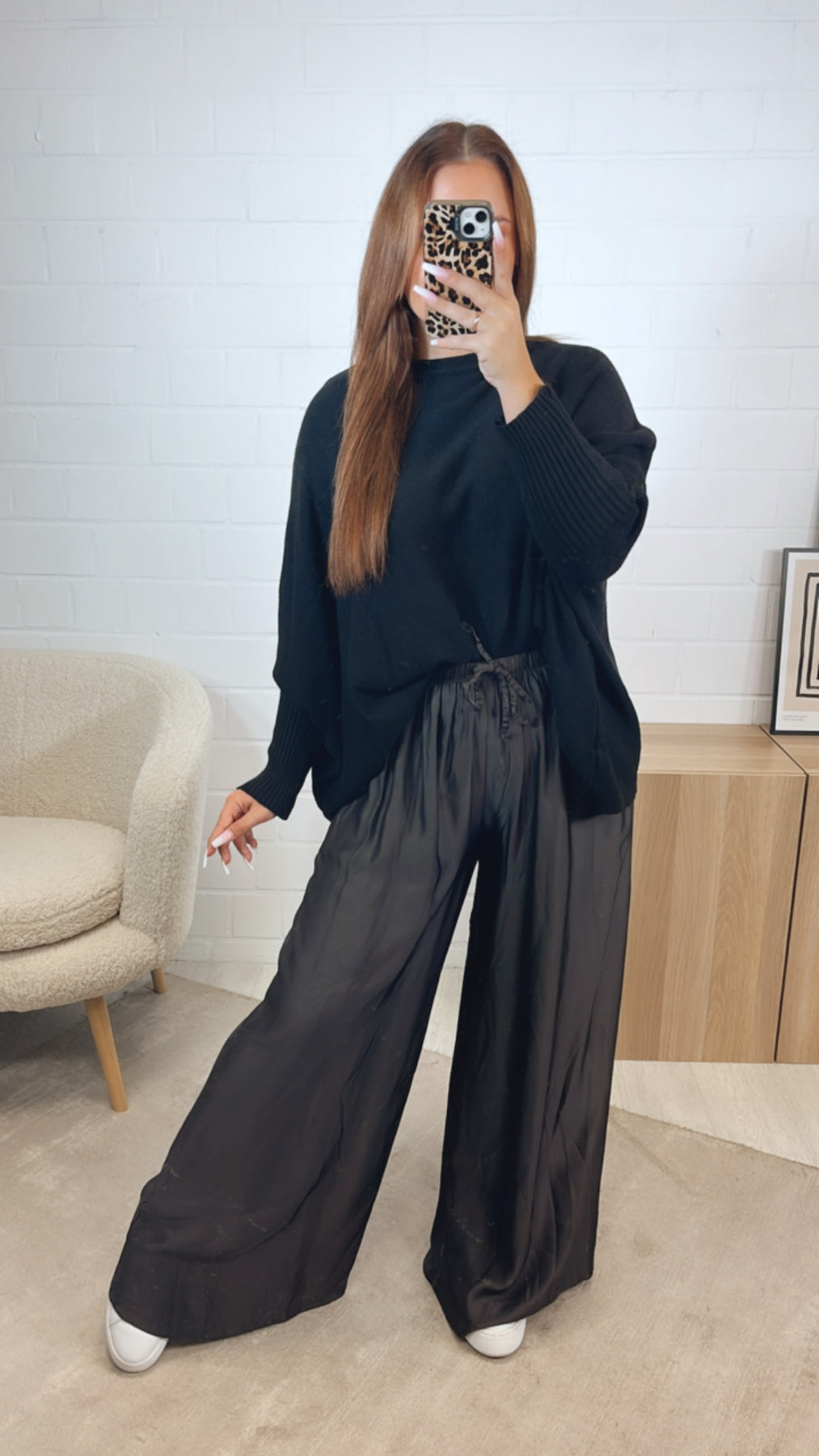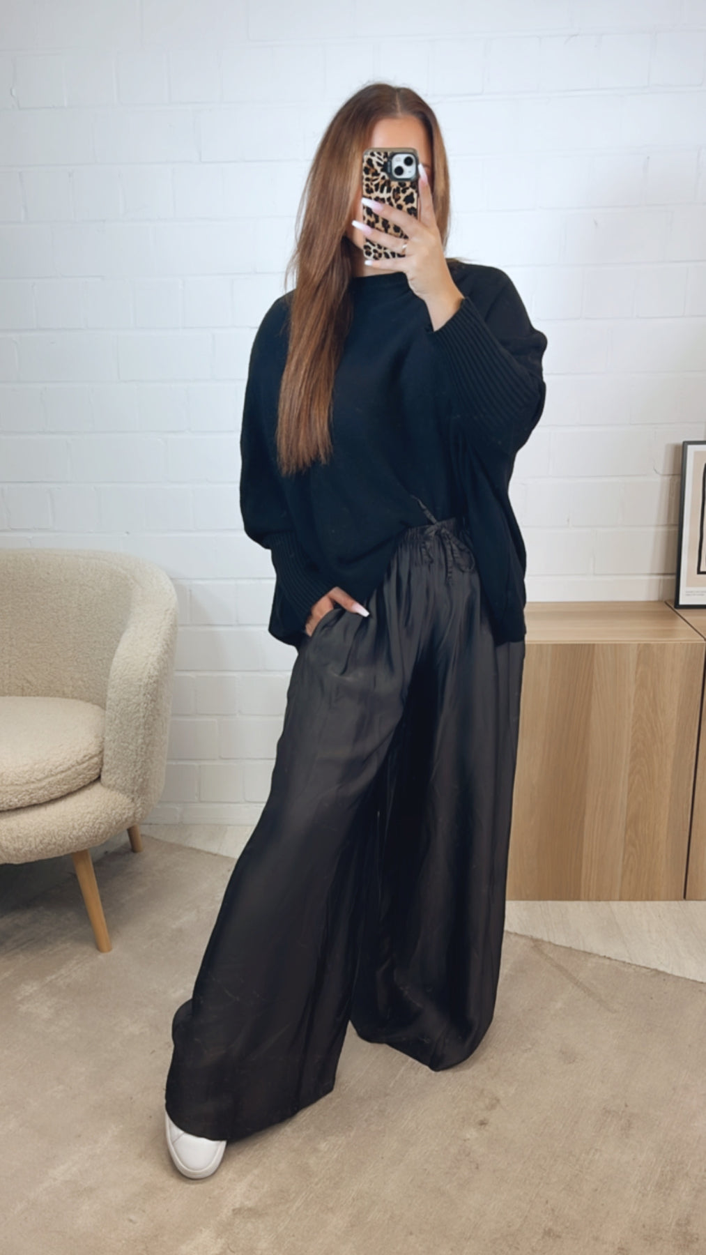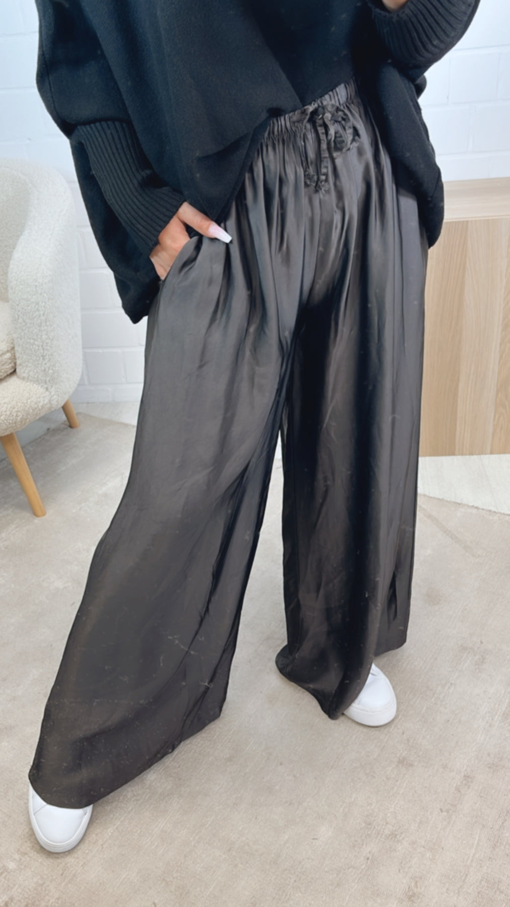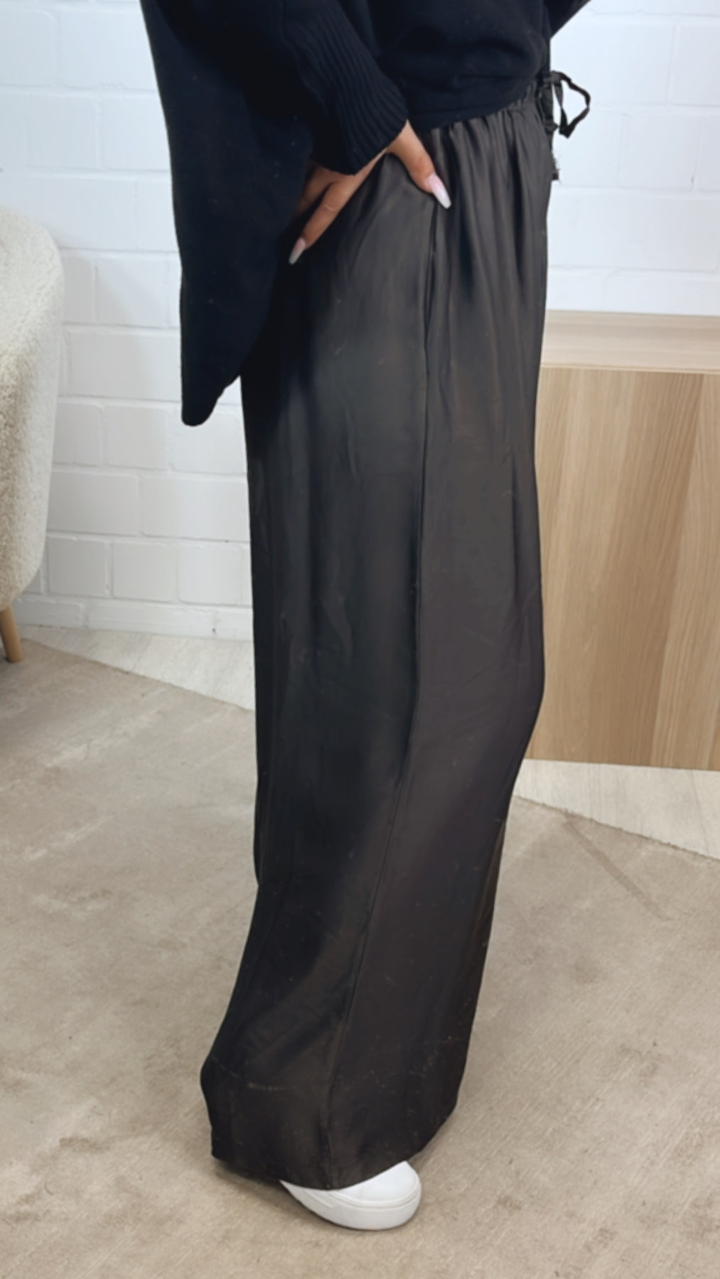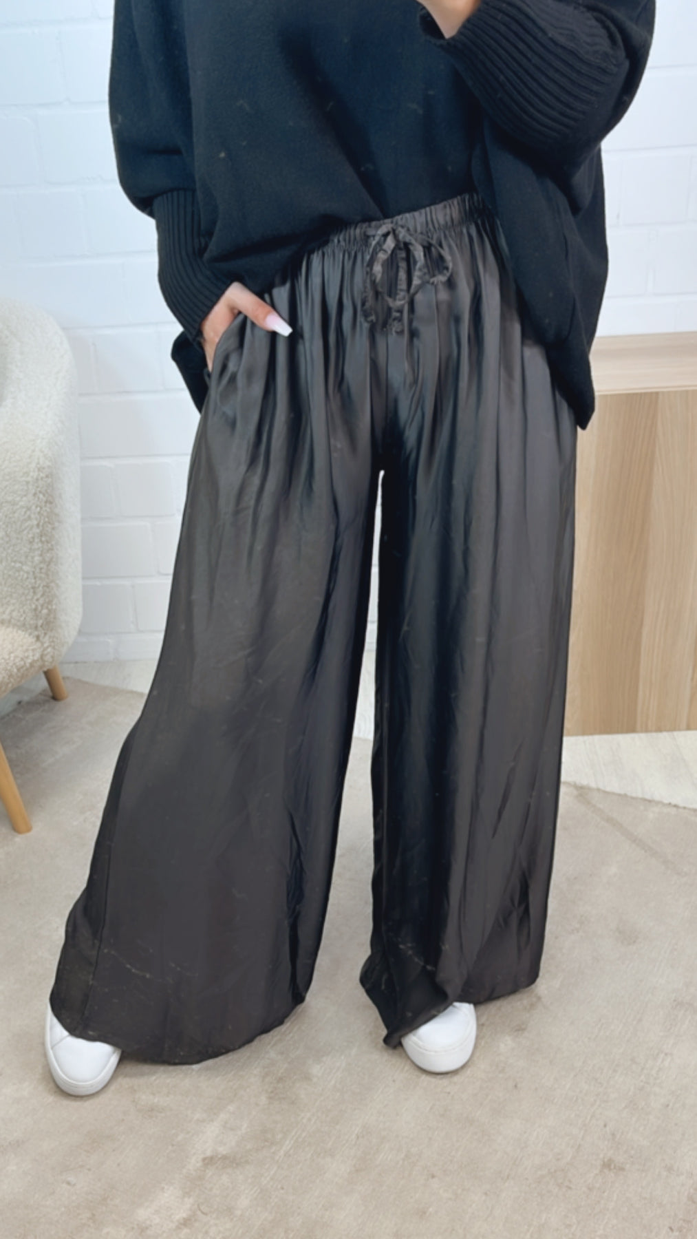 lange Satin Optik Hose mit Tunnelzug / Anthrazit Art. 12427