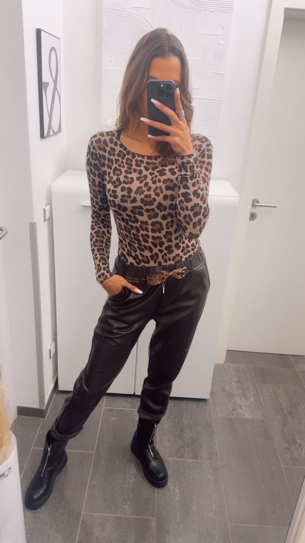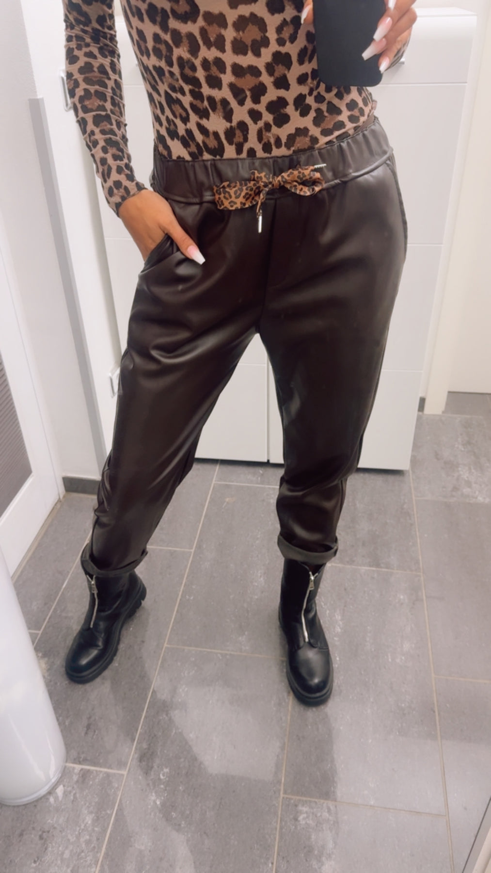 lockere Lederlook Hose mit Leo Schleife / dunkel braun Art. 13122