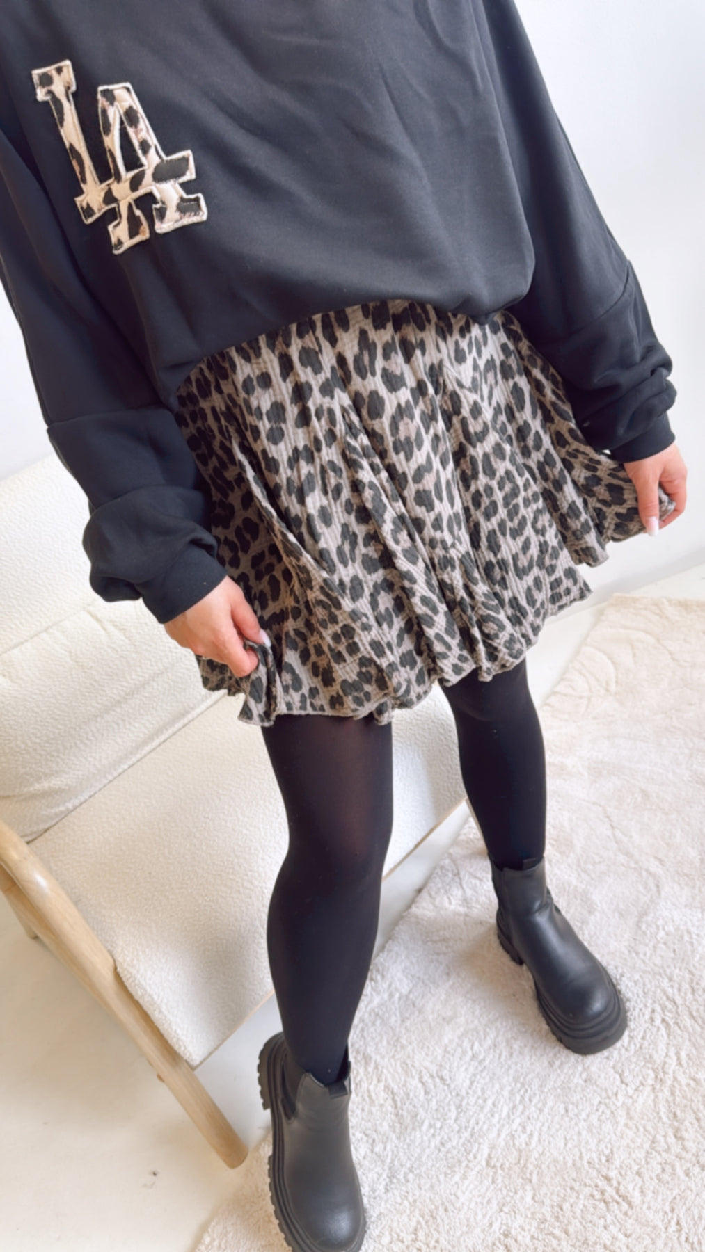 Eure Lieblinge vereint: Musselin im Leo-Look. Dieser wundervolle Rock ist einfach genial: er hat einen elastischen Bund und ist somit super angenehm zu tragen. Das Praktische: er hat eine "Unterhose" eingenäht, ist somit absolut blickdicht und Ihr könnt bedenkenlos Treppen steigen und müsst keine Angst vor einer Windböe haben. Durch seine Farbgebung lässt er sich außerdem super das ganze Jahr über tragen und kombinieren.