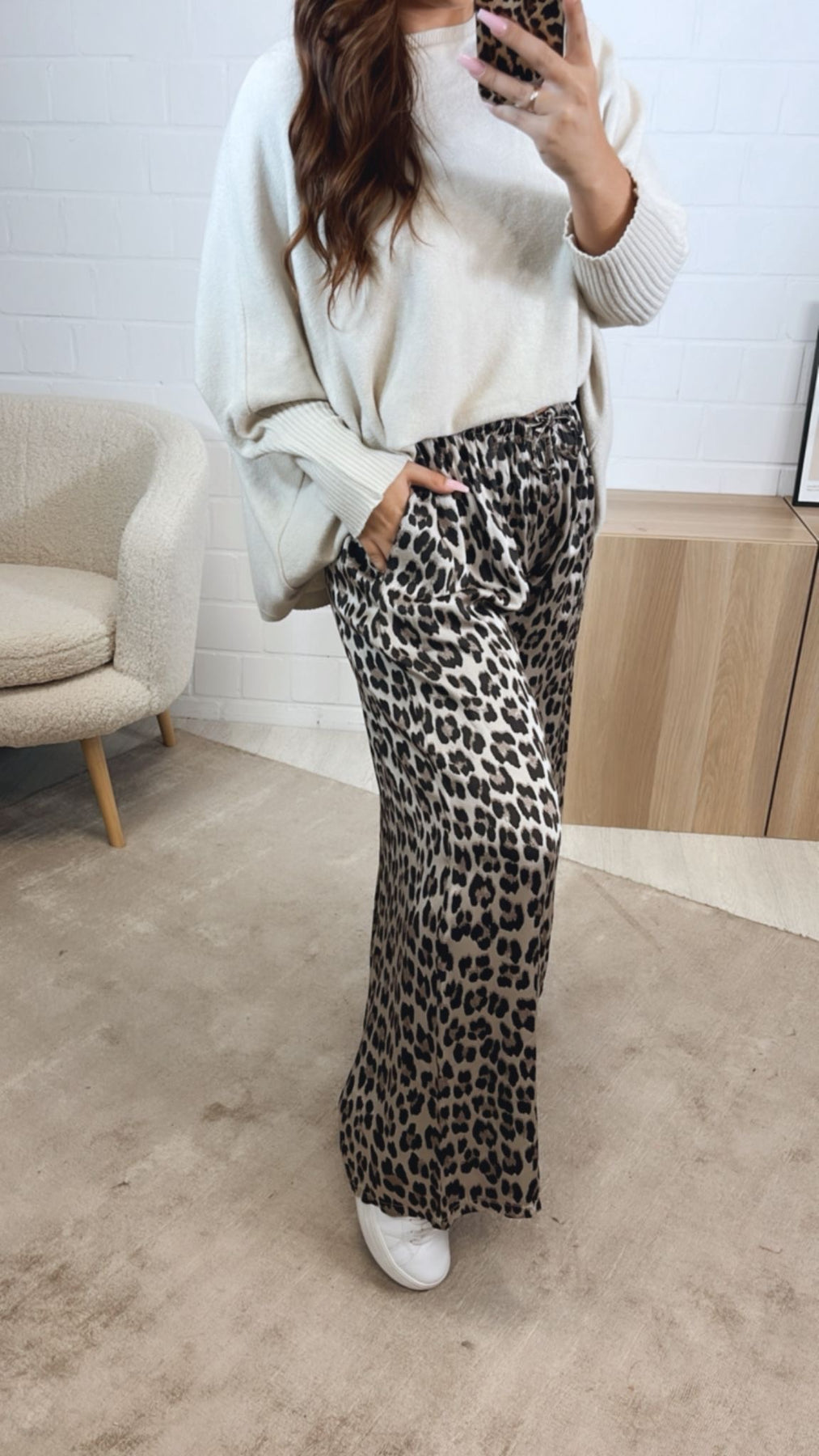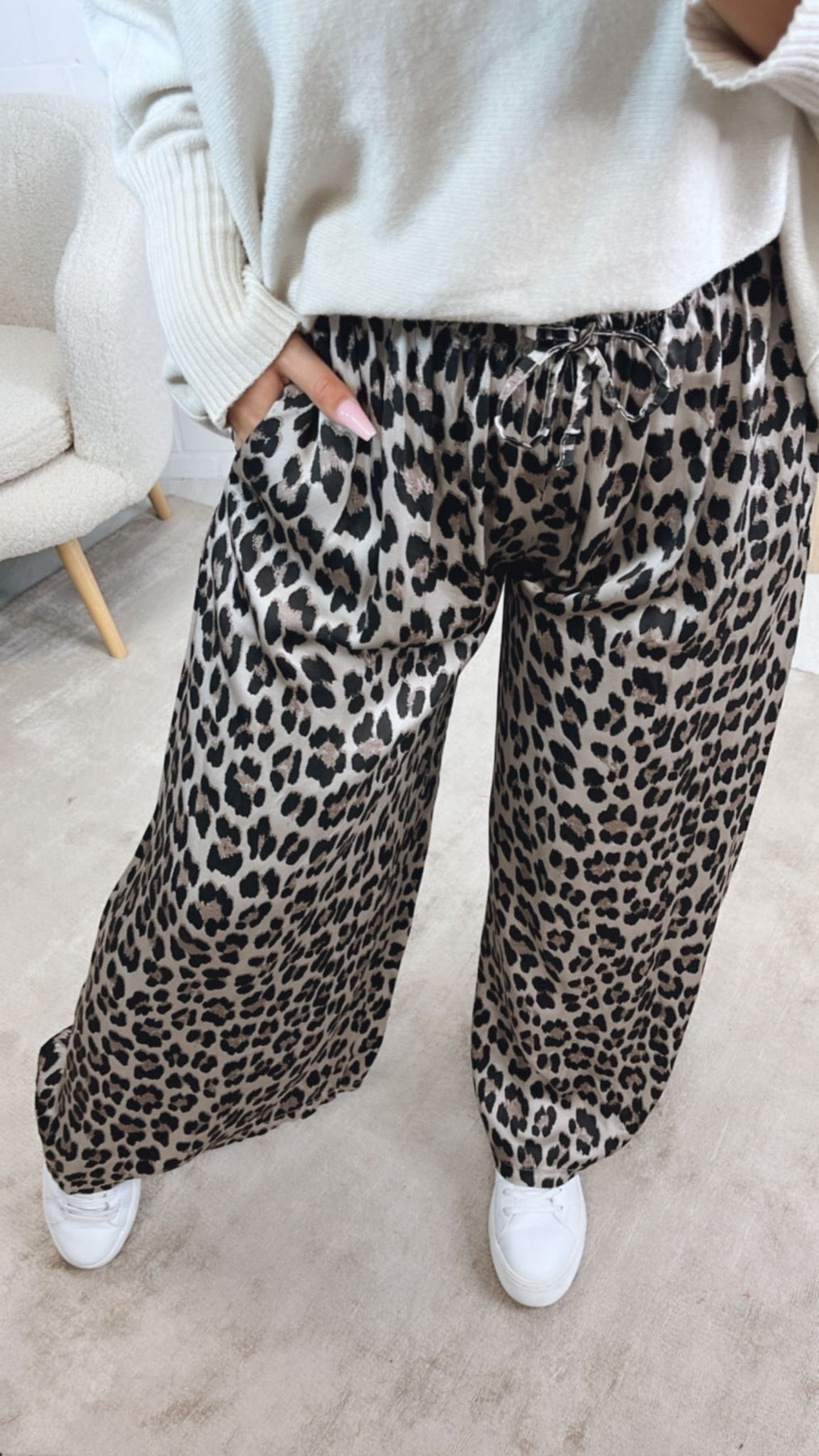Super leichte, luftige Hose. Sie ist in Eurem Lieblingsprint gehalten: LEO! Ihr elastischer Bund sorgt für einen super angenehmen Sitz und ein super tolles Tragegefühl. Neben ihrem elastischen Bund lässt sie sich zusätzlich mit einem Tunnelzug enger bzw. lockerer schnüren. Das Praktische: sie hat zwei Eingriffstaschen.