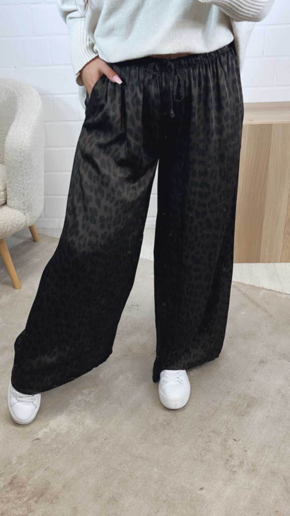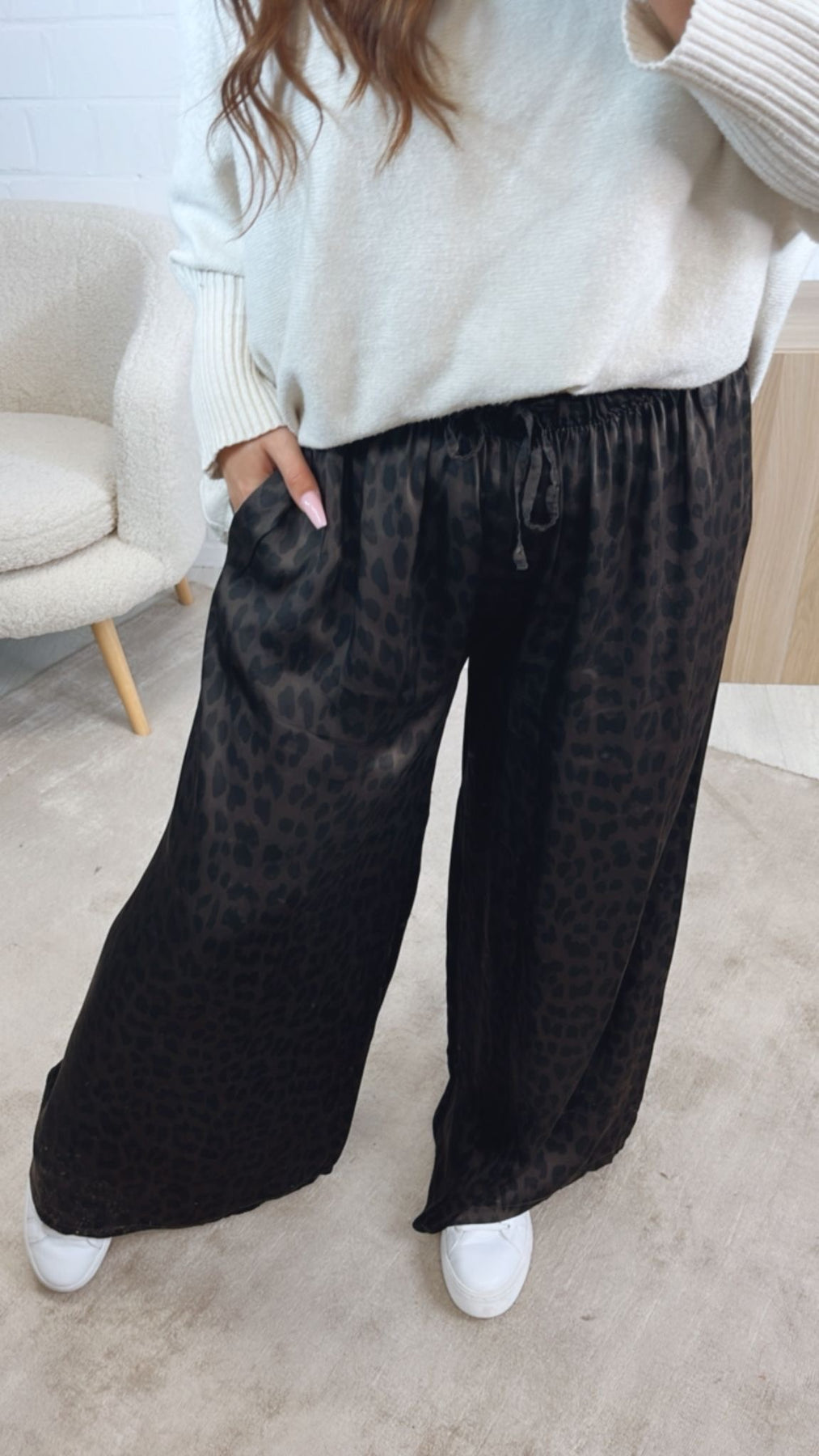 Super leichte, luftige Hose. Sie ist in Eurem Lieblingsprint gehalten: LEO! Ihr elastischer Bund sorgt für einen super angenehmen Sitz und ein super tolles Tragegefühl. Neben ihrem elastischen Bund lässt sie sich zusätzlich mit einem Tunnelzug enger bzw. lockerer schnüren. Das Praktische: sie hat zwei Eingriffstaschen.