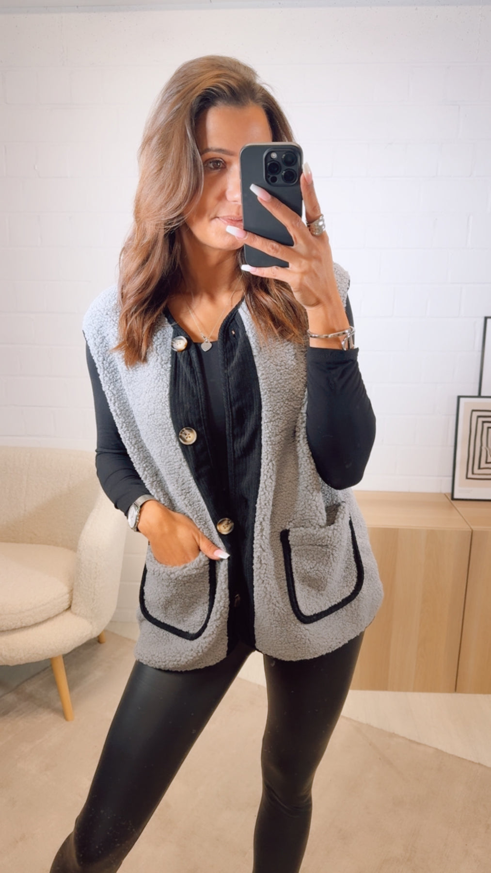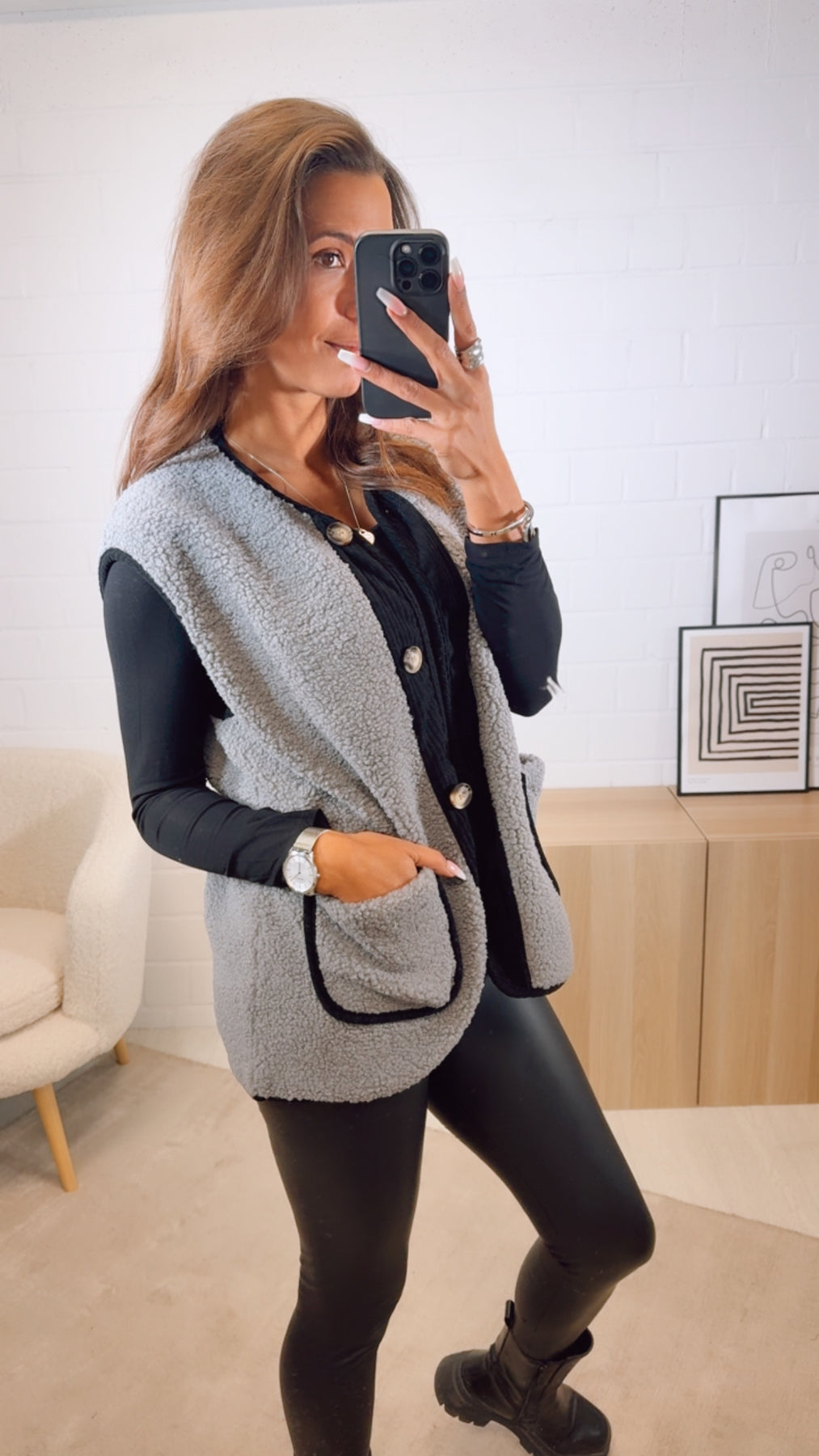 TEDDY Weste mit Cord Applikationen / grau - schwarz Art. 13095