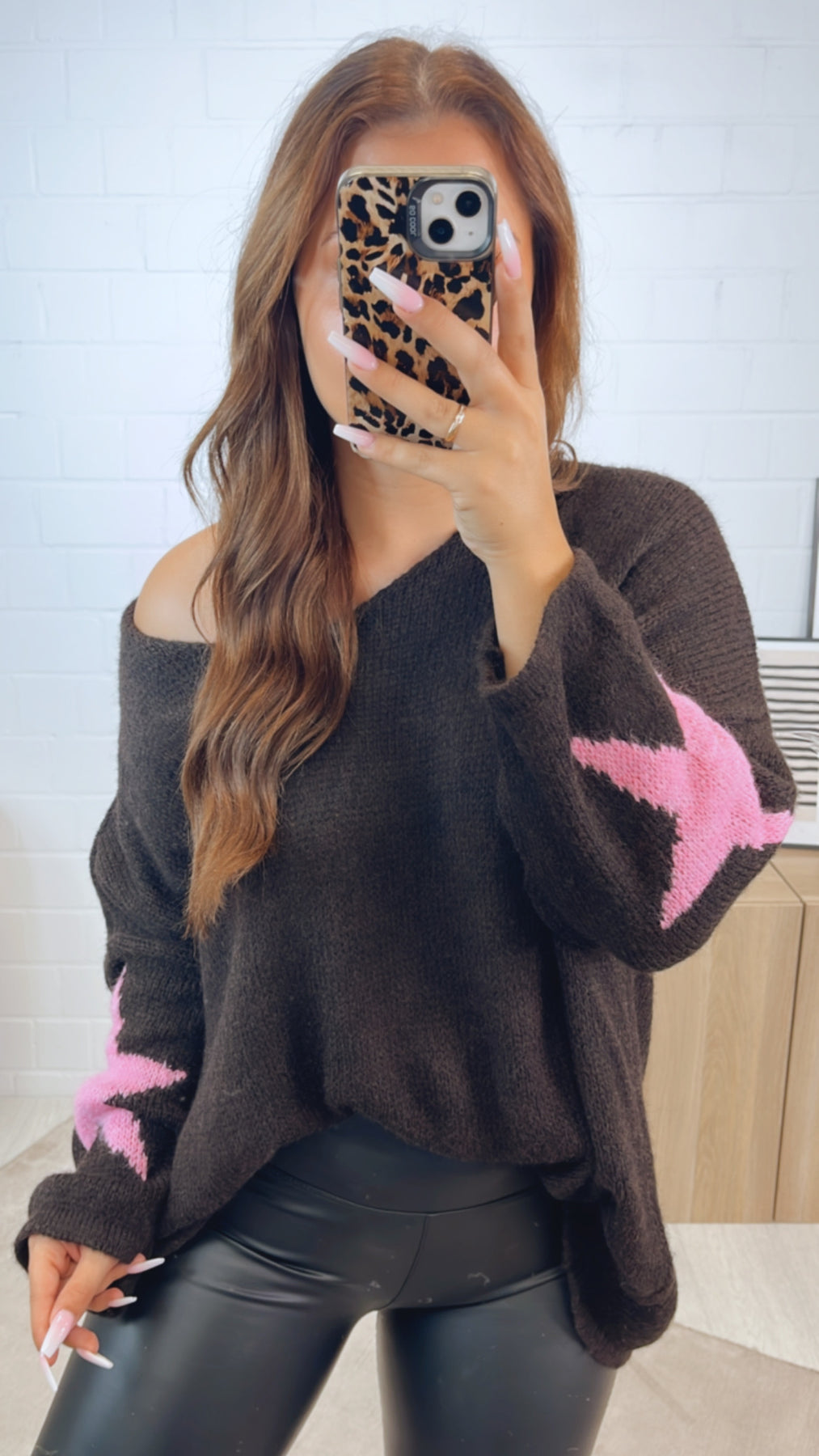 ultra oversize Strick Pullover " Take It Easy " / dunkel braun - pink Art. 12332