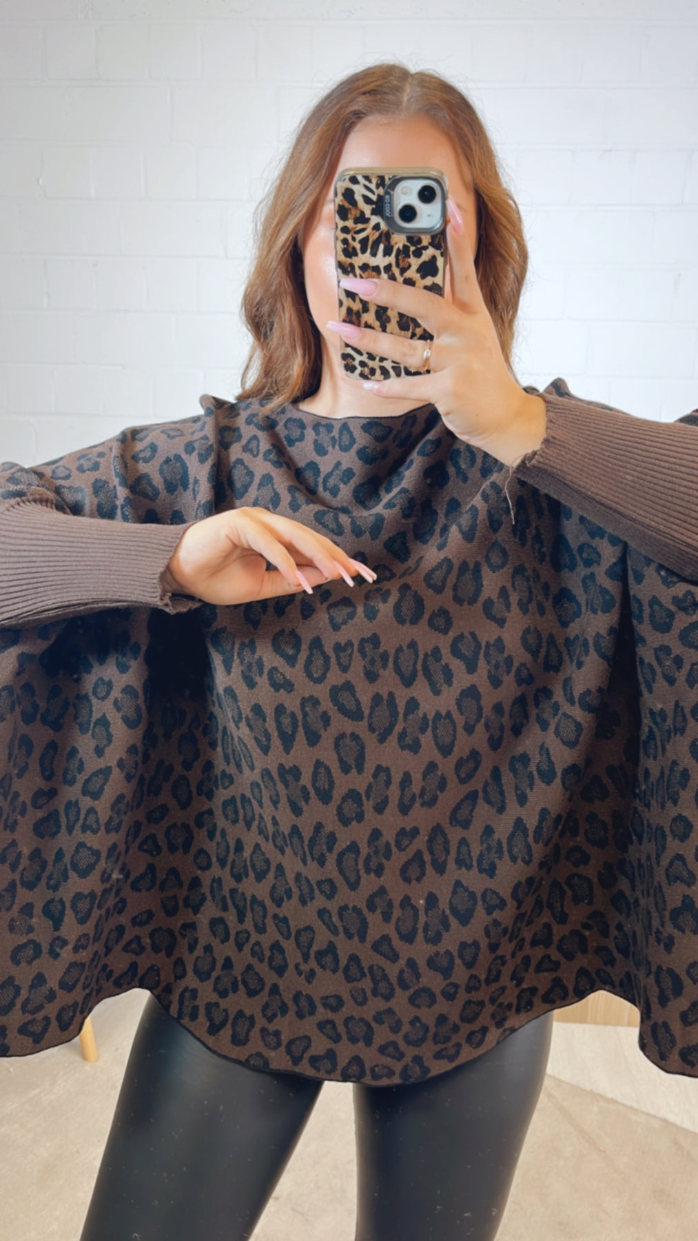 LEO ultra weicher Pullover mit Fledermausärmeln / schoko braun - schwarz Art. 12584