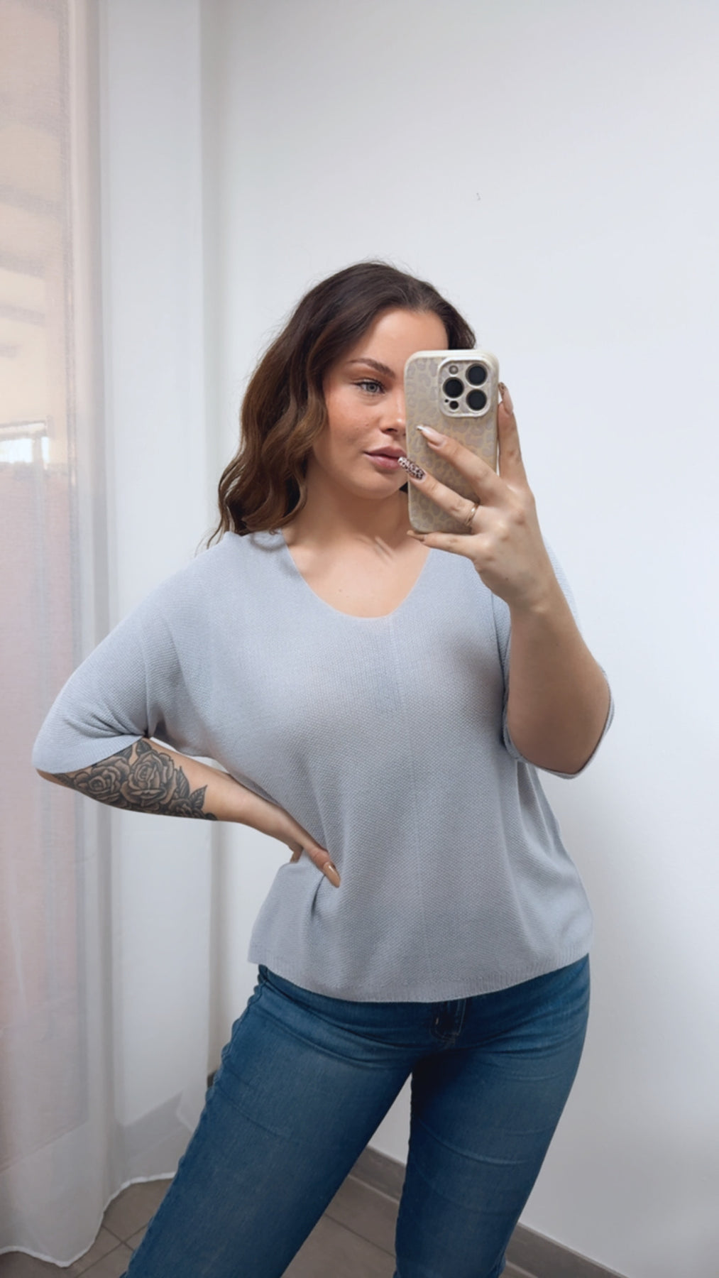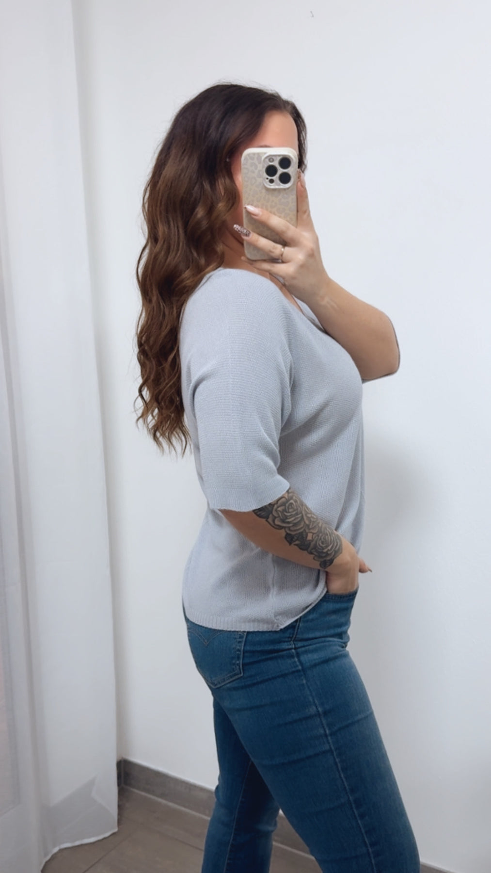 feines Strick Oberteil mit kurzen Armen / hell grau Art. 14290