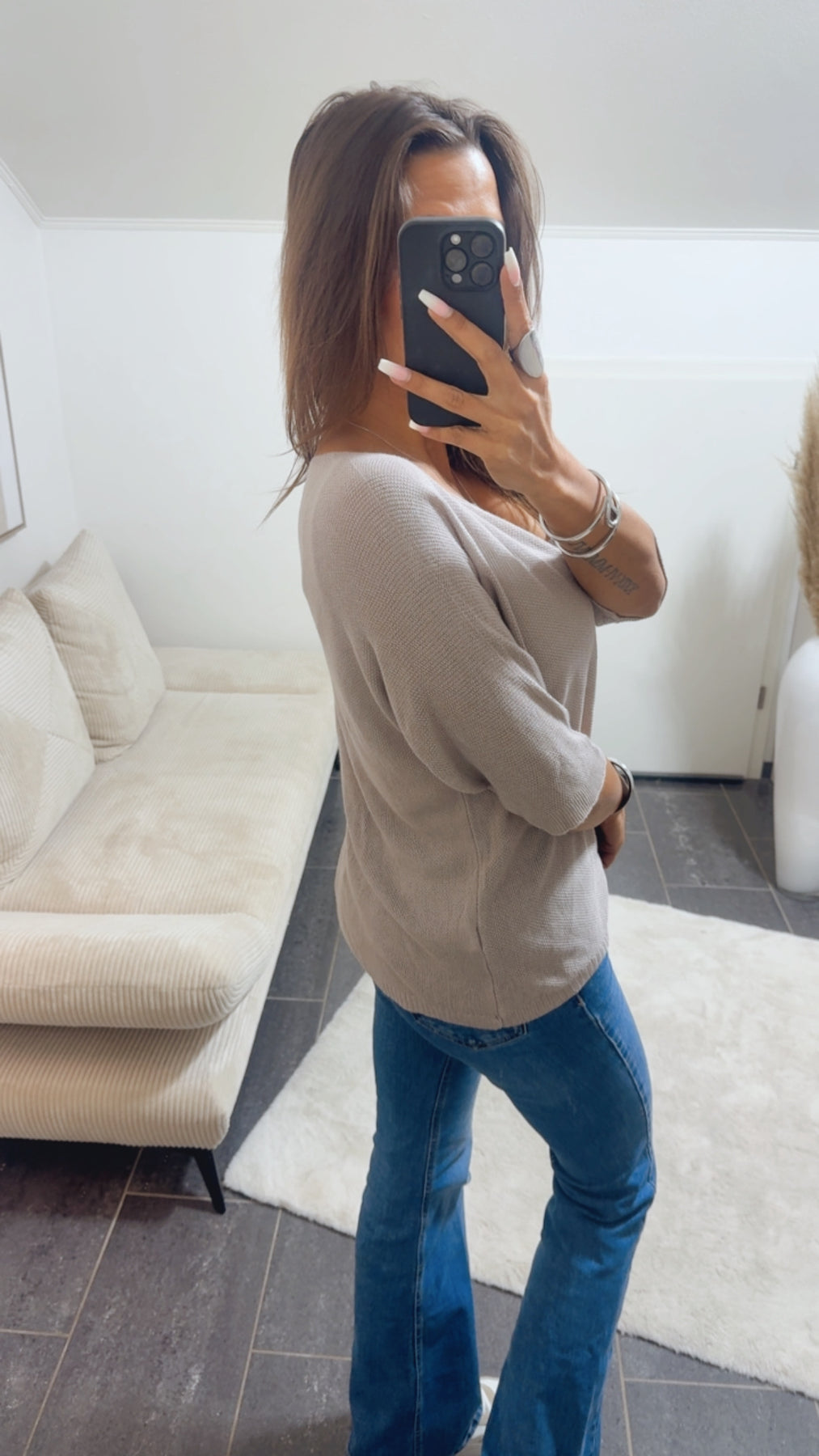 feines Strick Oberteil mit kurzen Armen / light taupe Art. 14534