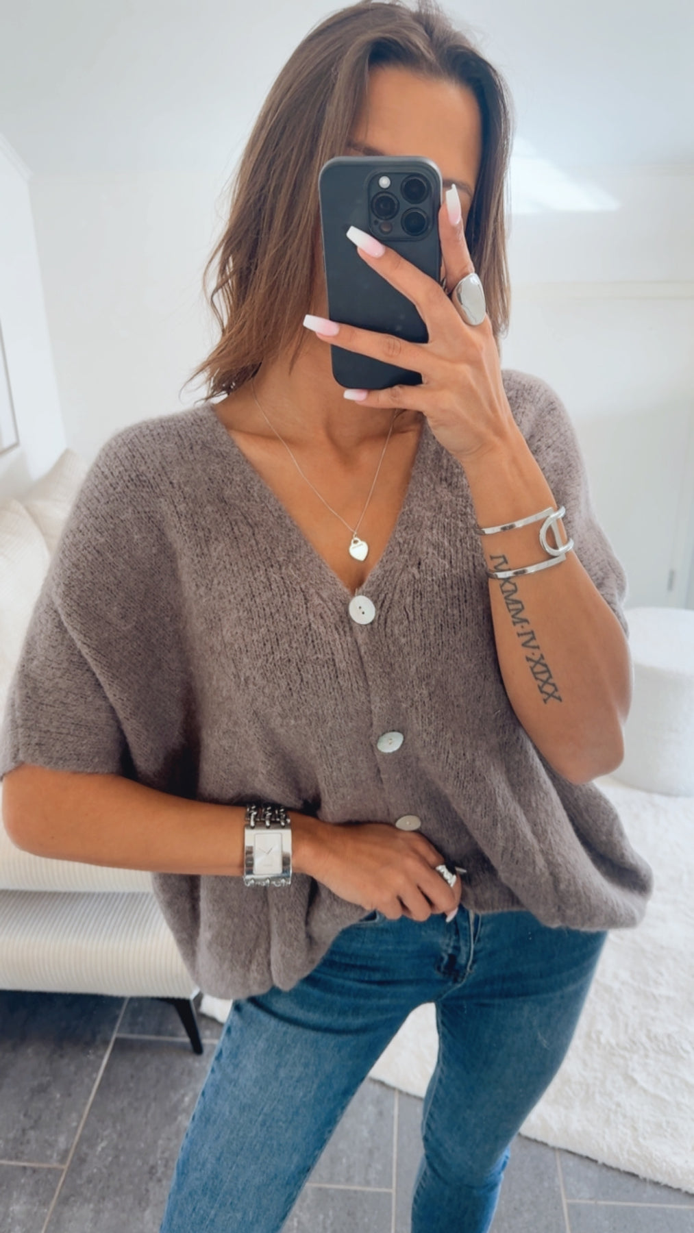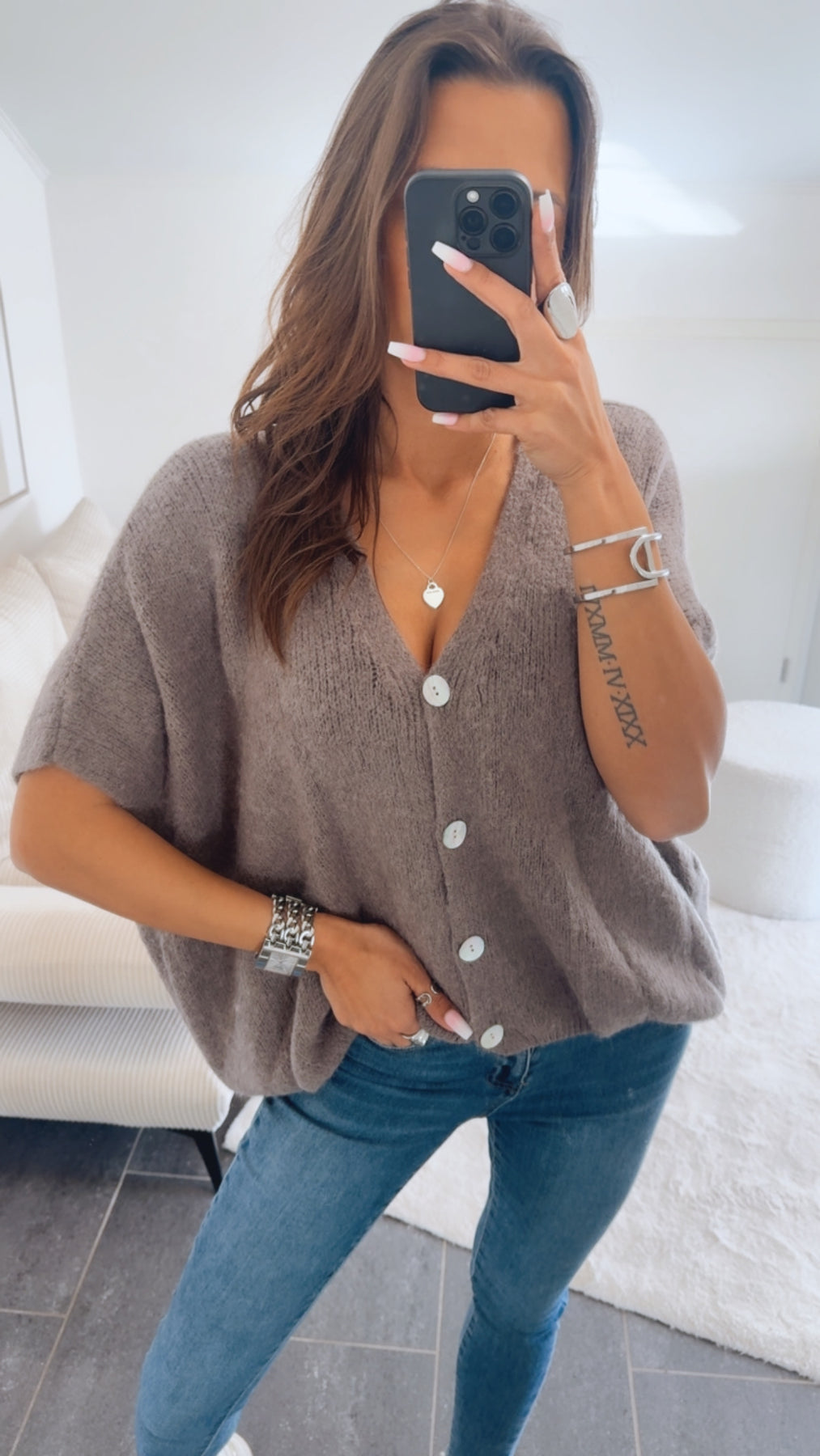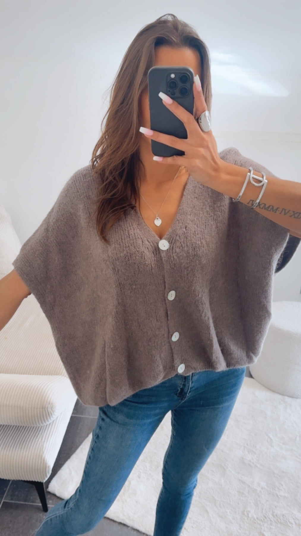 oversize Strick Pullunder, Perlmutt Optik Knöpfe / taupe Art. 14541