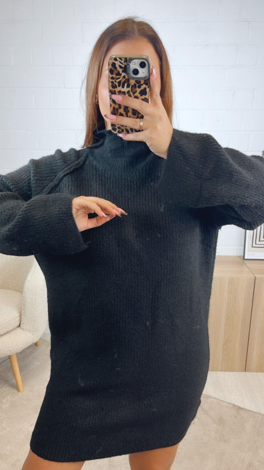 Super schlichtes und tolle Strickkleid, welches gradlinig geschnitten ist. Seine Ärmel sind zudem lang und fallen ebenfalls gradlinig und weiter aus. Es lädt super zum einkuscheln ein und kann ebenfalls als Longpullover getragen und kombiniert werden.