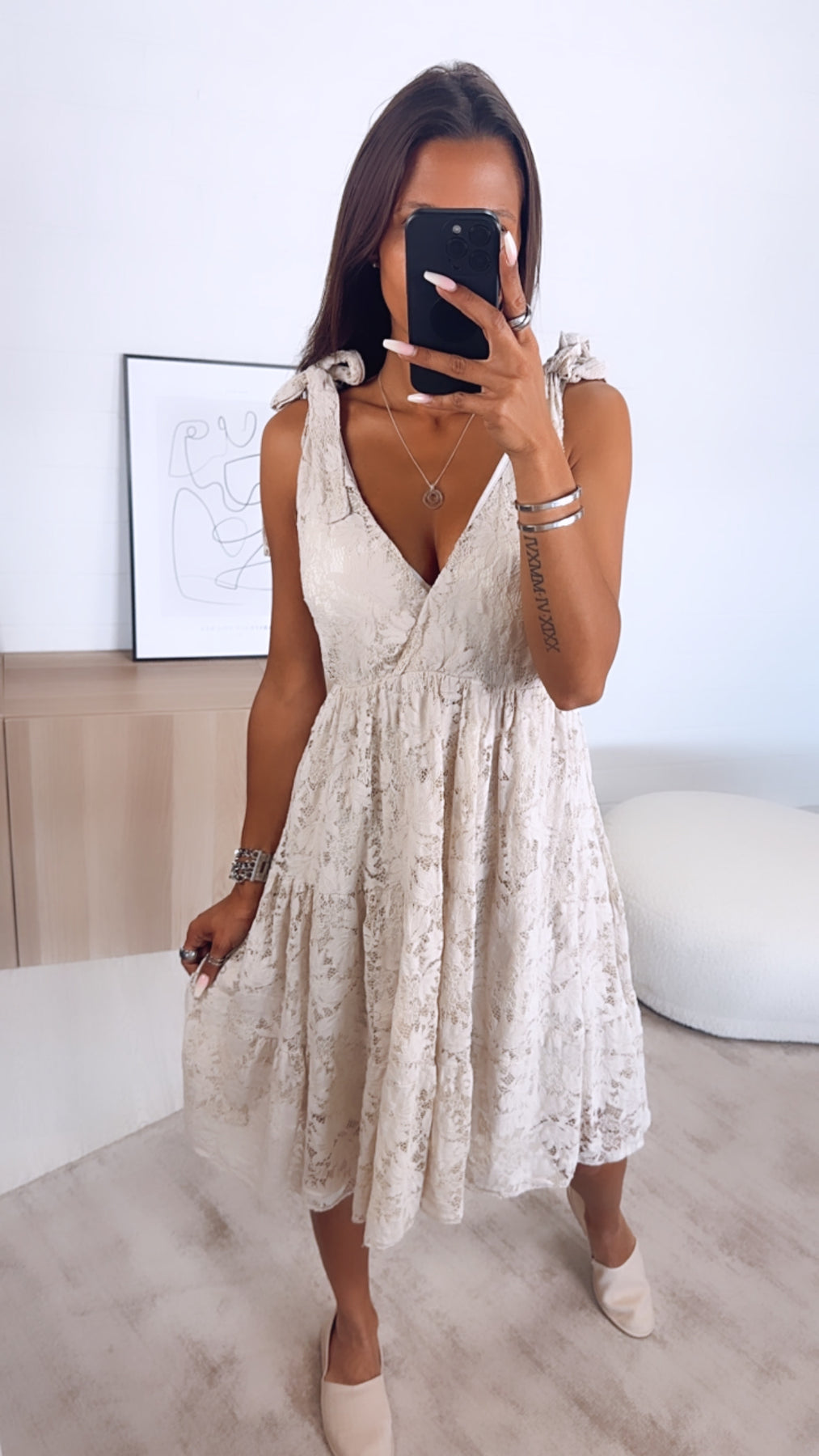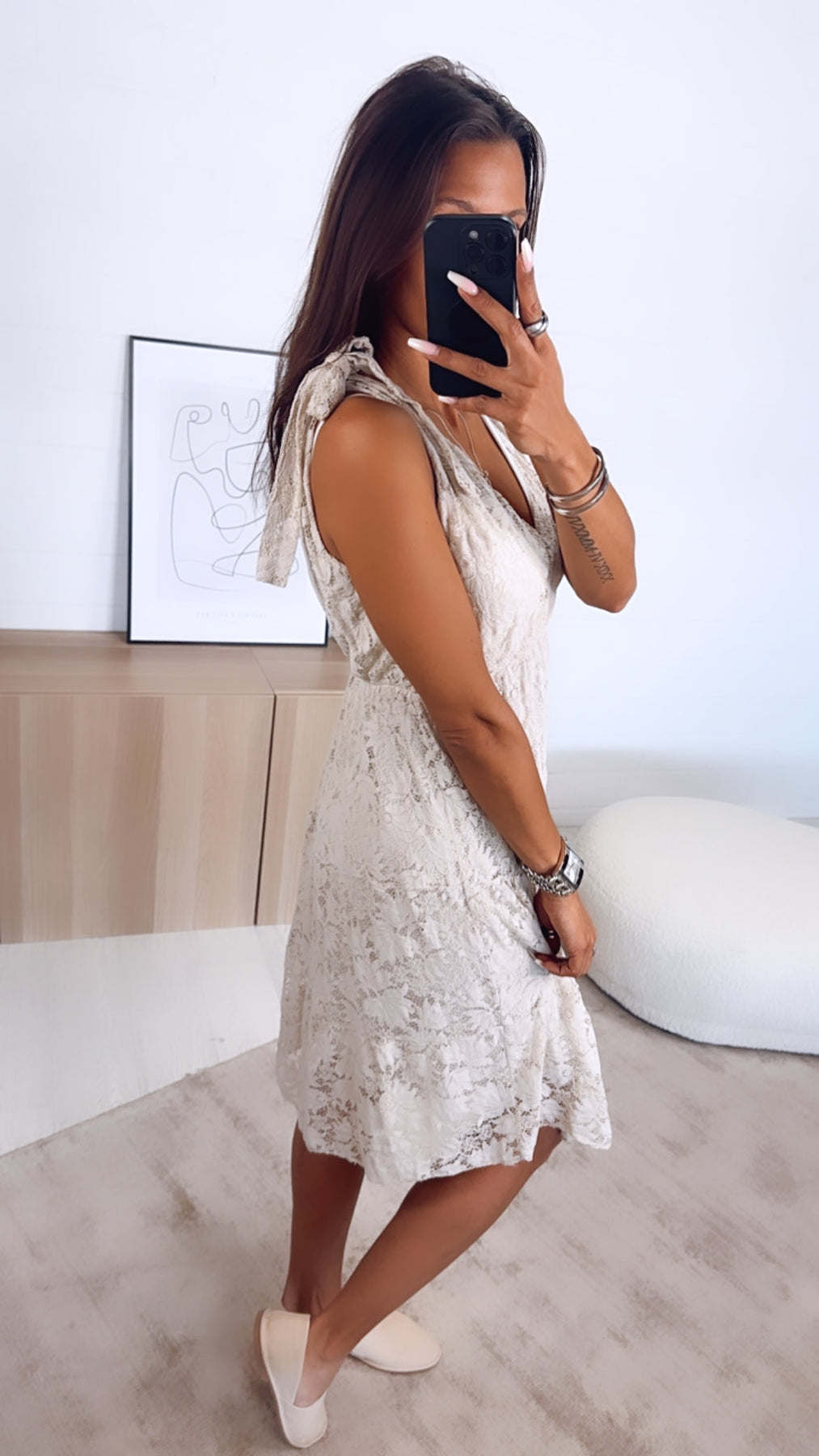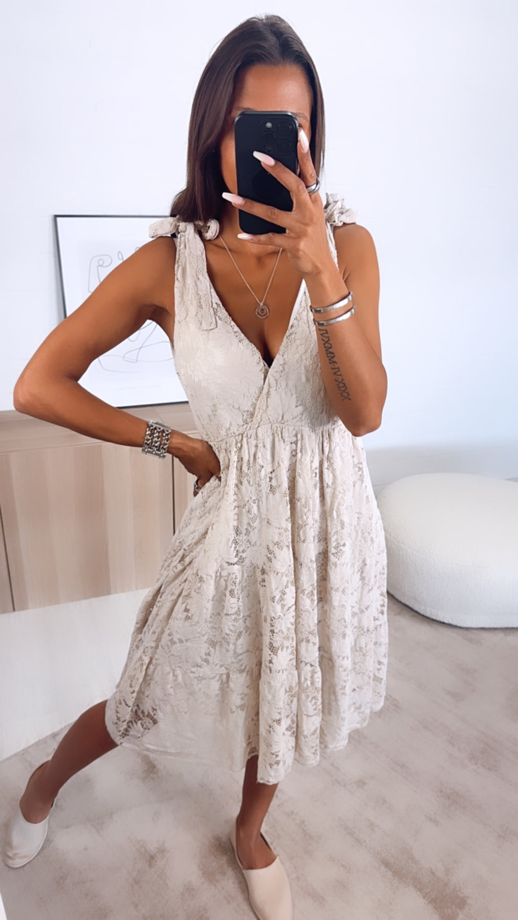 kurzes Kleid in Spitzen Optik / beige Art. 6404
