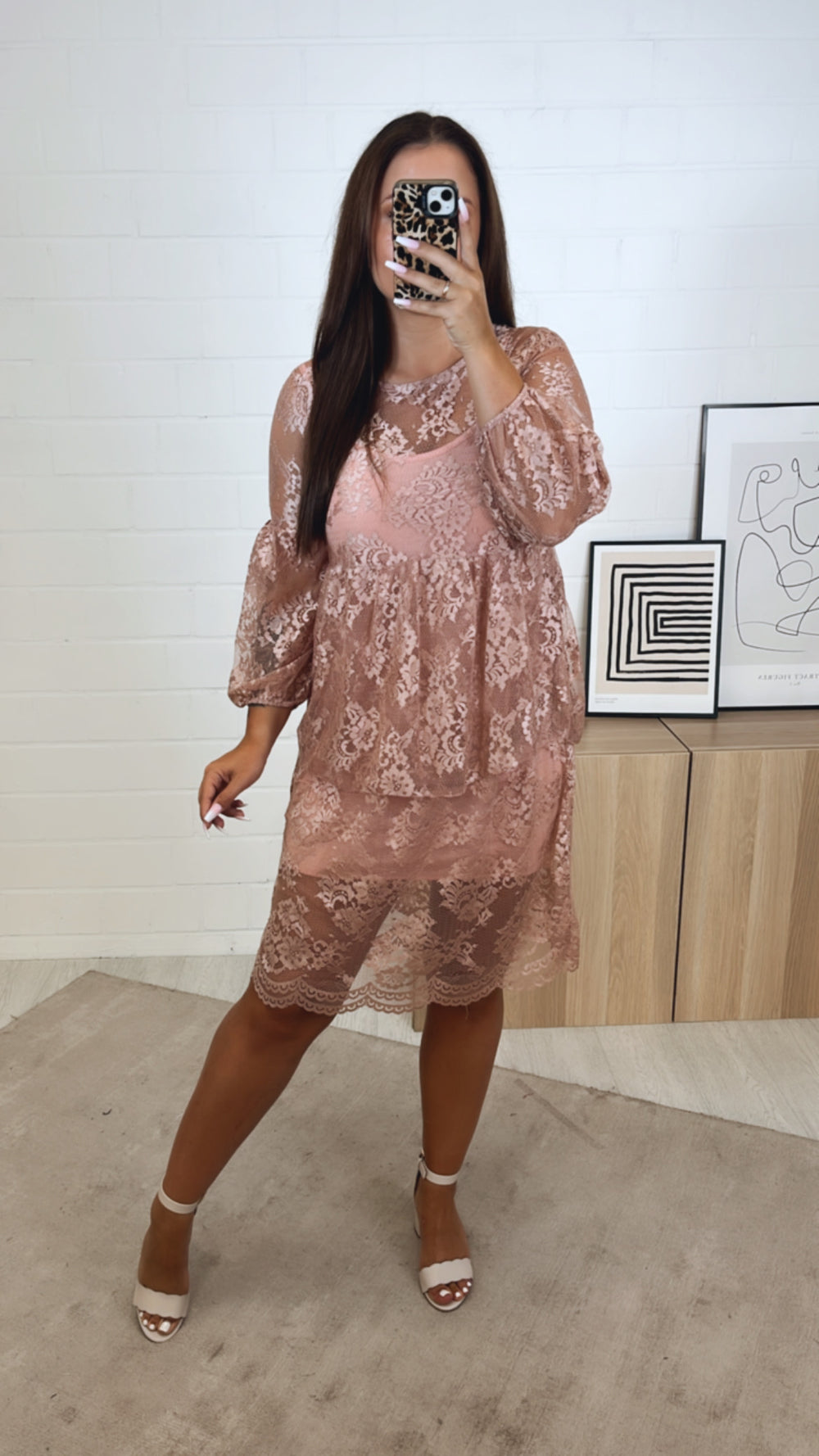 (Midi-) Spitzen Kleid, Unterkleid / altrosa Art. 11132