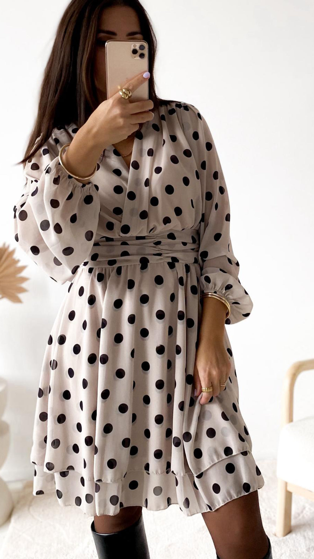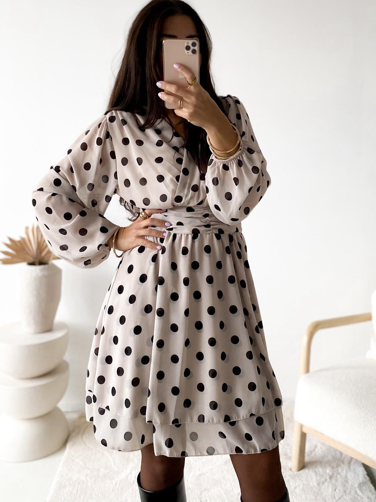 PUNKTE Chiffon Kleid / creme - schwarz Art. 12647