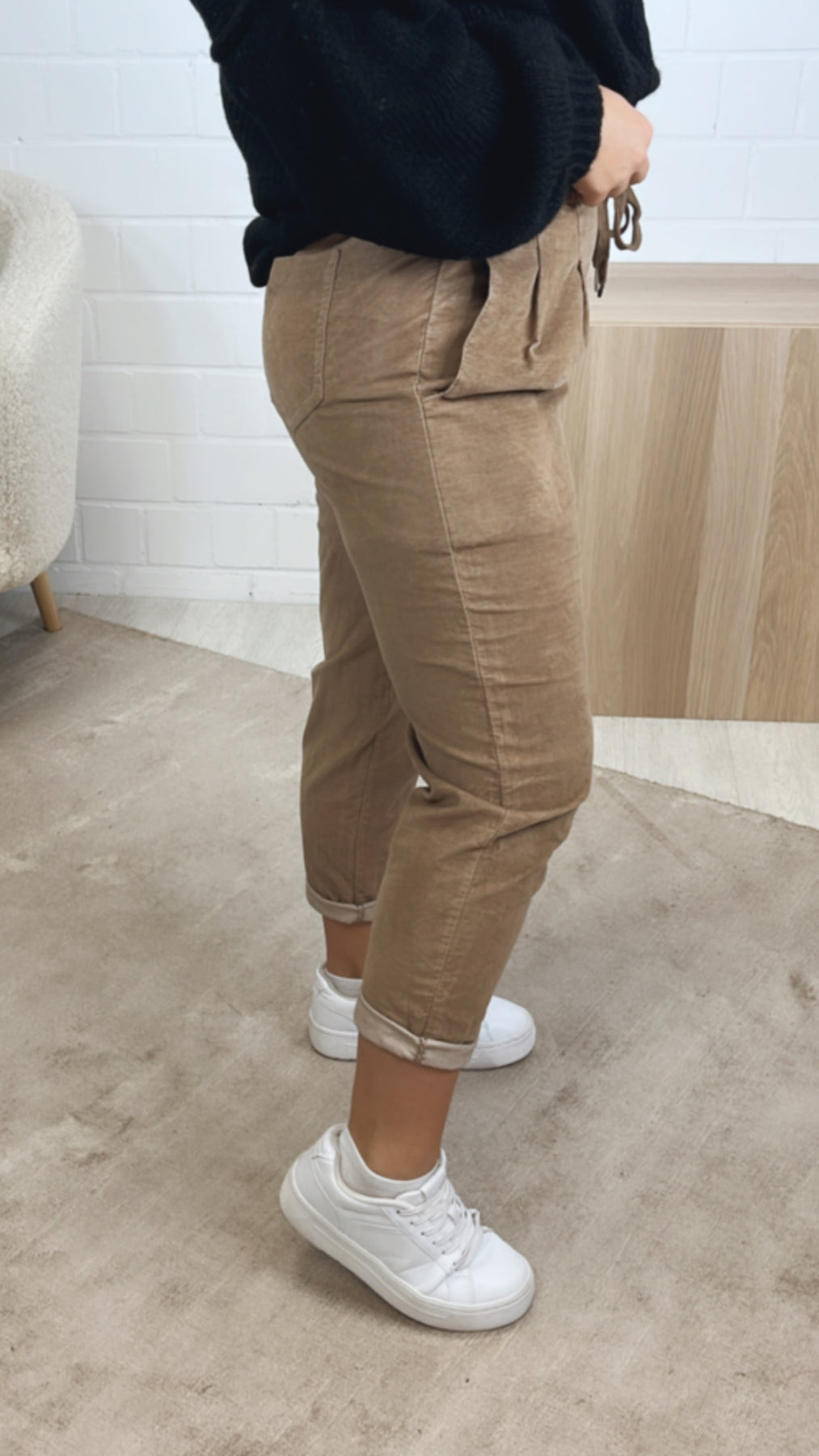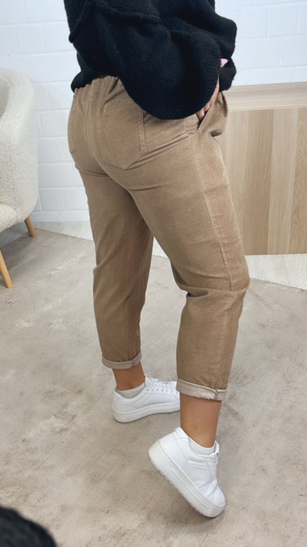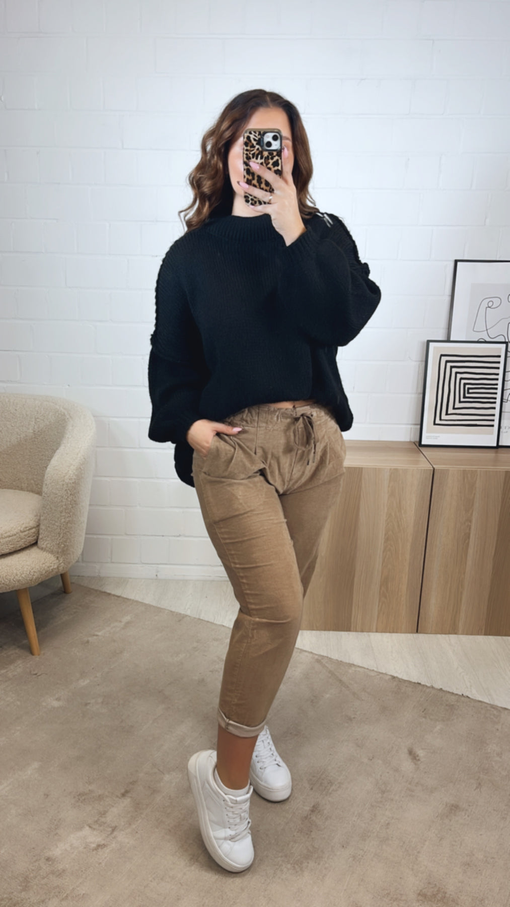 lockere Knitter Optik Hose im Velours Look / camel Art. 12856