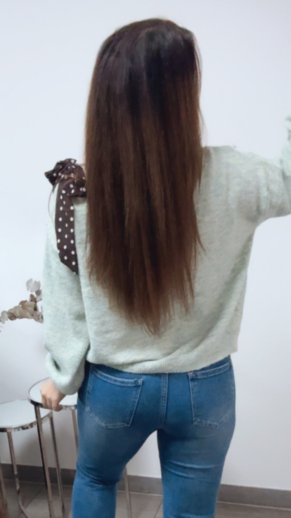 Super süßer Pullover. Das Besondere: er wird oneshoulder getragen, da er auf einer Schulterseite ein cut-out hat. Absoluter Wahnsninn! Das Besondere: an diesem cut-out hat er eine Schleife angebracht, welche in einer tollen und angesagten Punkte-Optik gehalten ist.