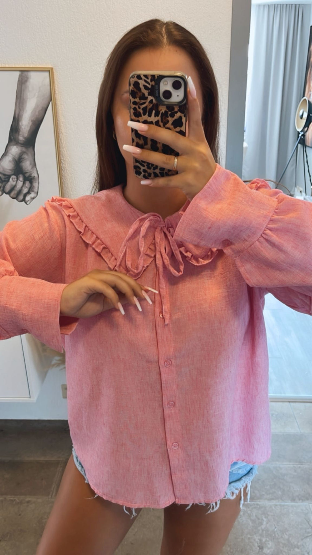 Bluse mit Volant besetztem Kragen / pink Art. 10141