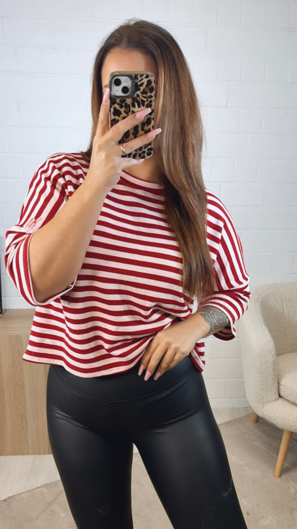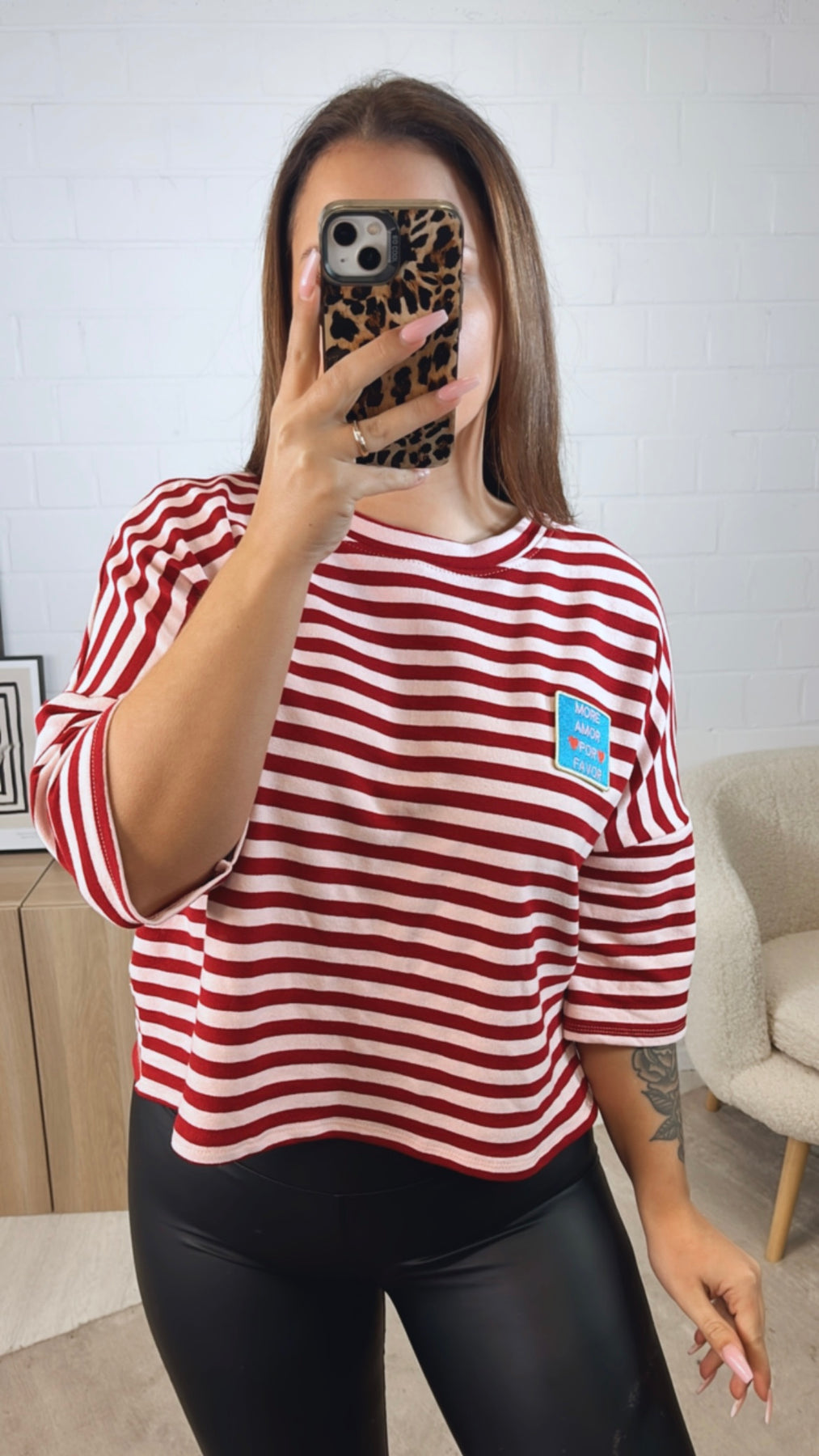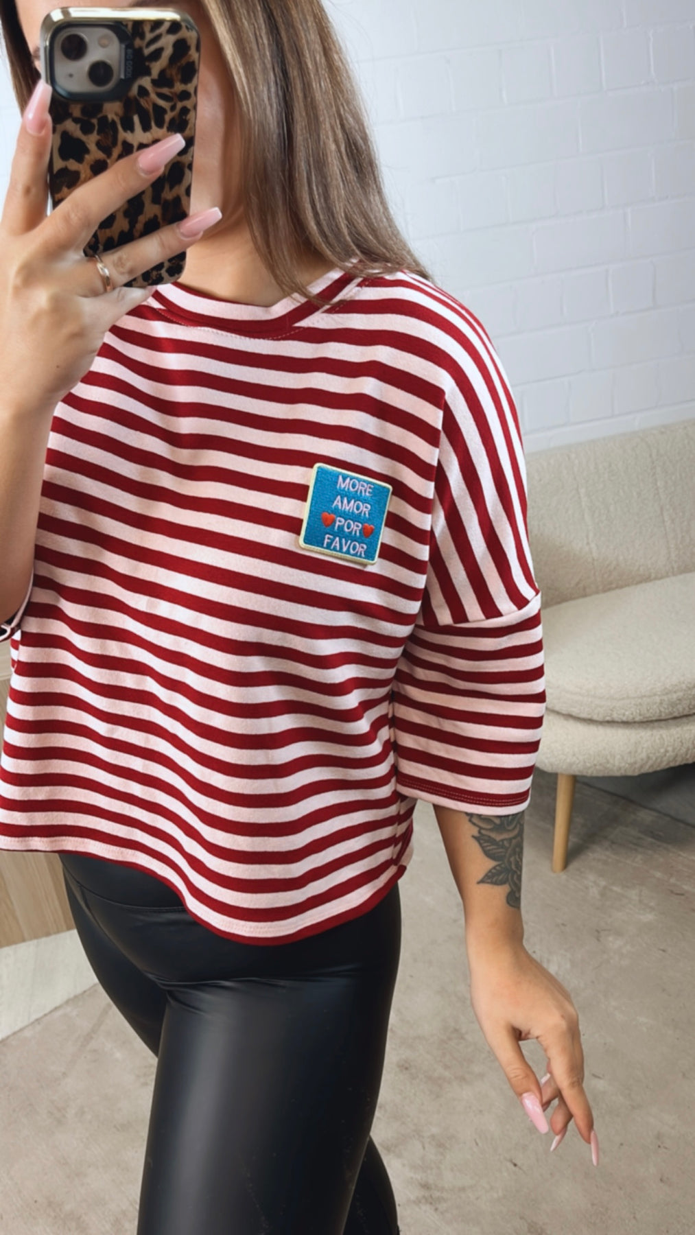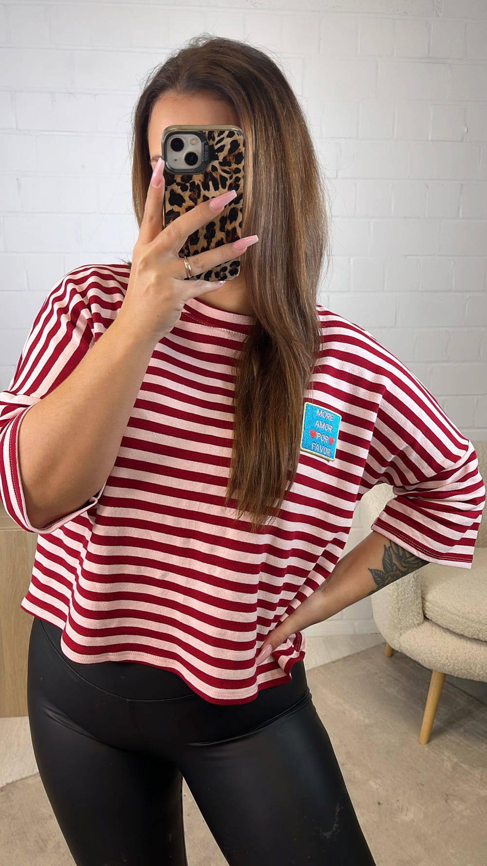 gestreiftes Oberteil " More amor por favor " / bordeaux rot - rosa Art. 12730