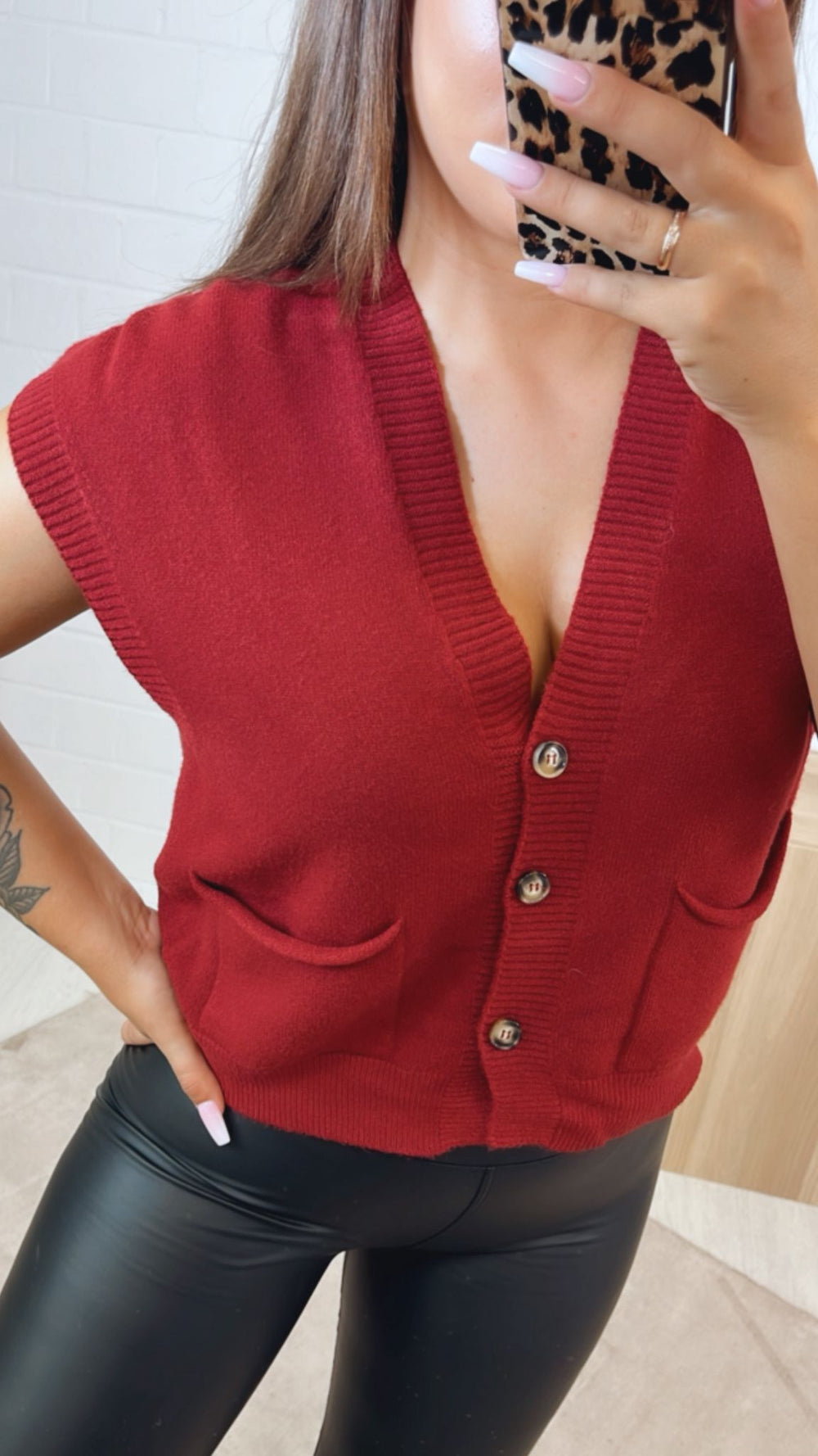 kurze Strickweste mit drei Knöpfen und Taschen / rot Art.122344