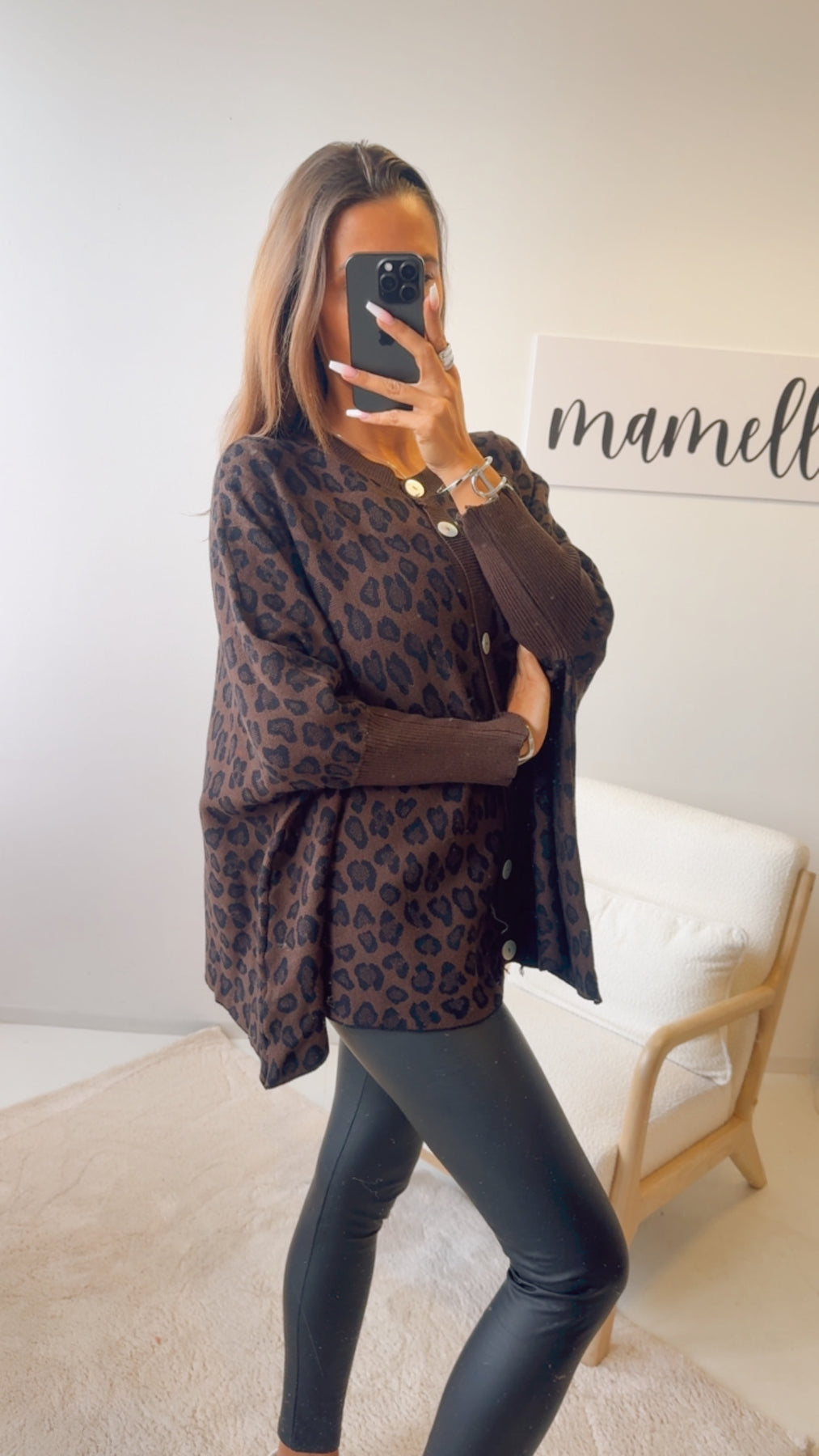 LEO Cardigan / Pullover - ultra weicher mit Fledermausärmeln / braun - schwarz Art. 12689