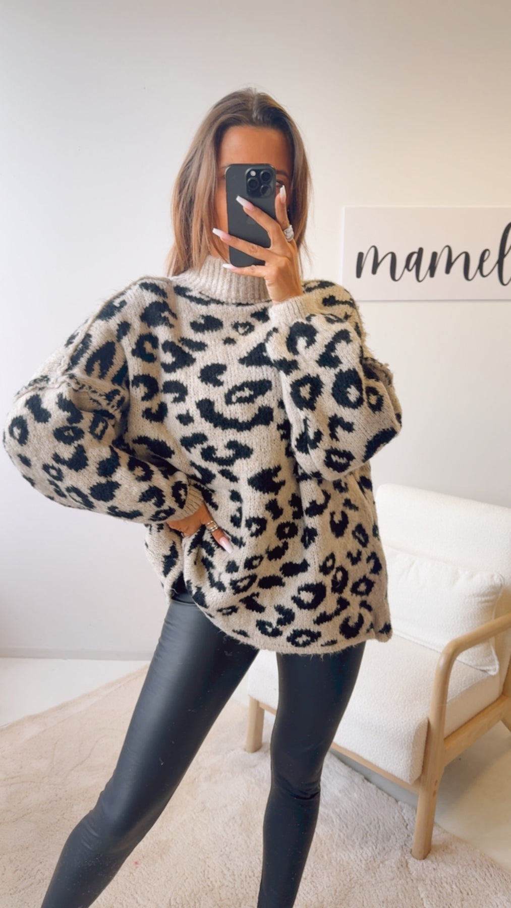 LEO Oversize Kuschel - Pullover / beige - schwarz Art. 12691
