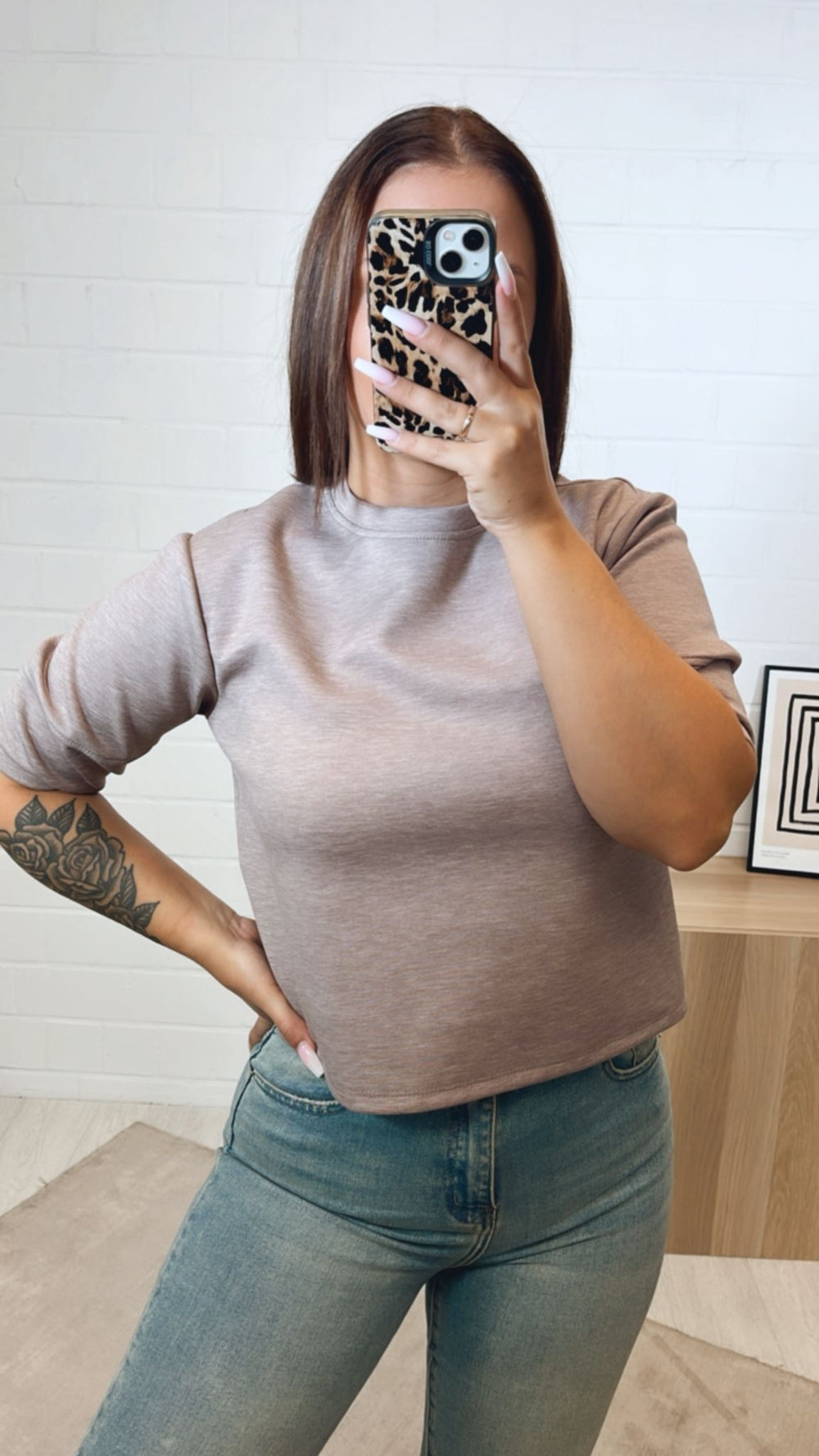 Oberteil mit Rundausschnitt, fester Stoff, kurze Arme / light taupe Art. 9941