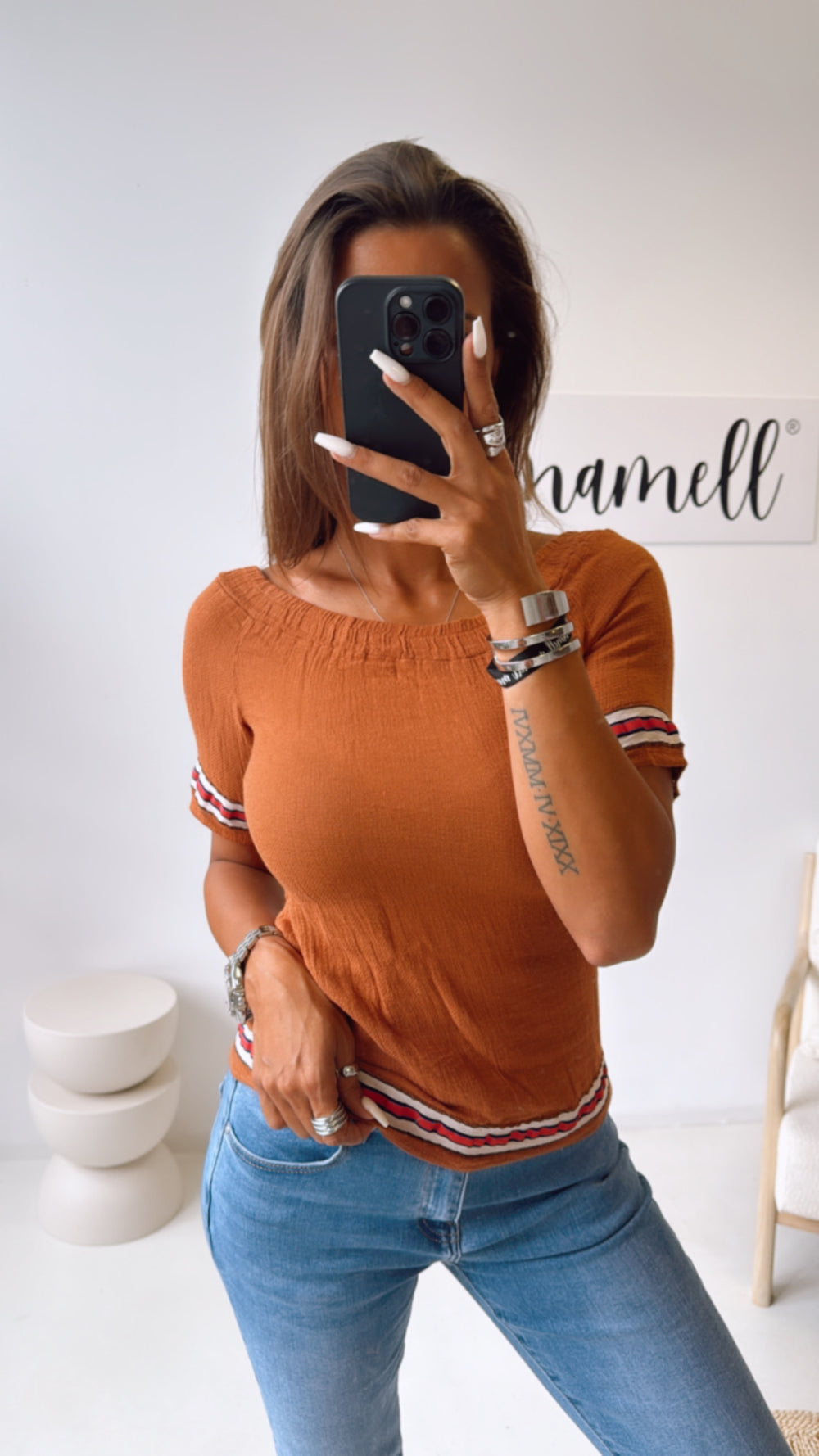 Off - Shoulder Baumwoll Oberteil, Streifen / rost Art. 10524