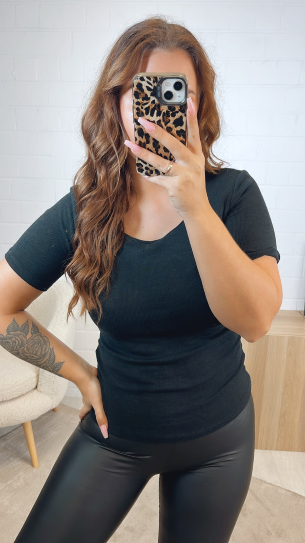 Schönes, schlichtes T-shirt, welches in einer Ripp Optik gehalten ist und einen tollen U-Boot-Ausschnitt hat.