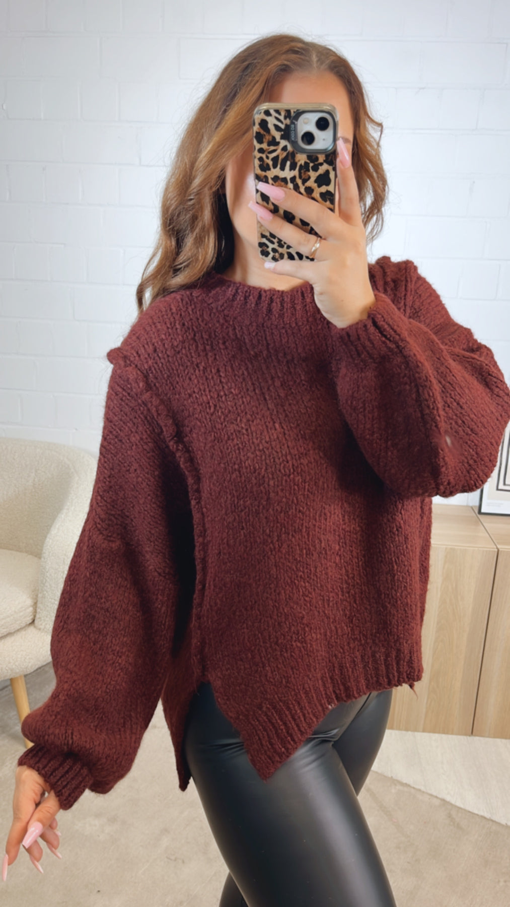 Strick Pullover, zweifacher Schlitz auf Vorderseite / bordeaux rot Art. 12507