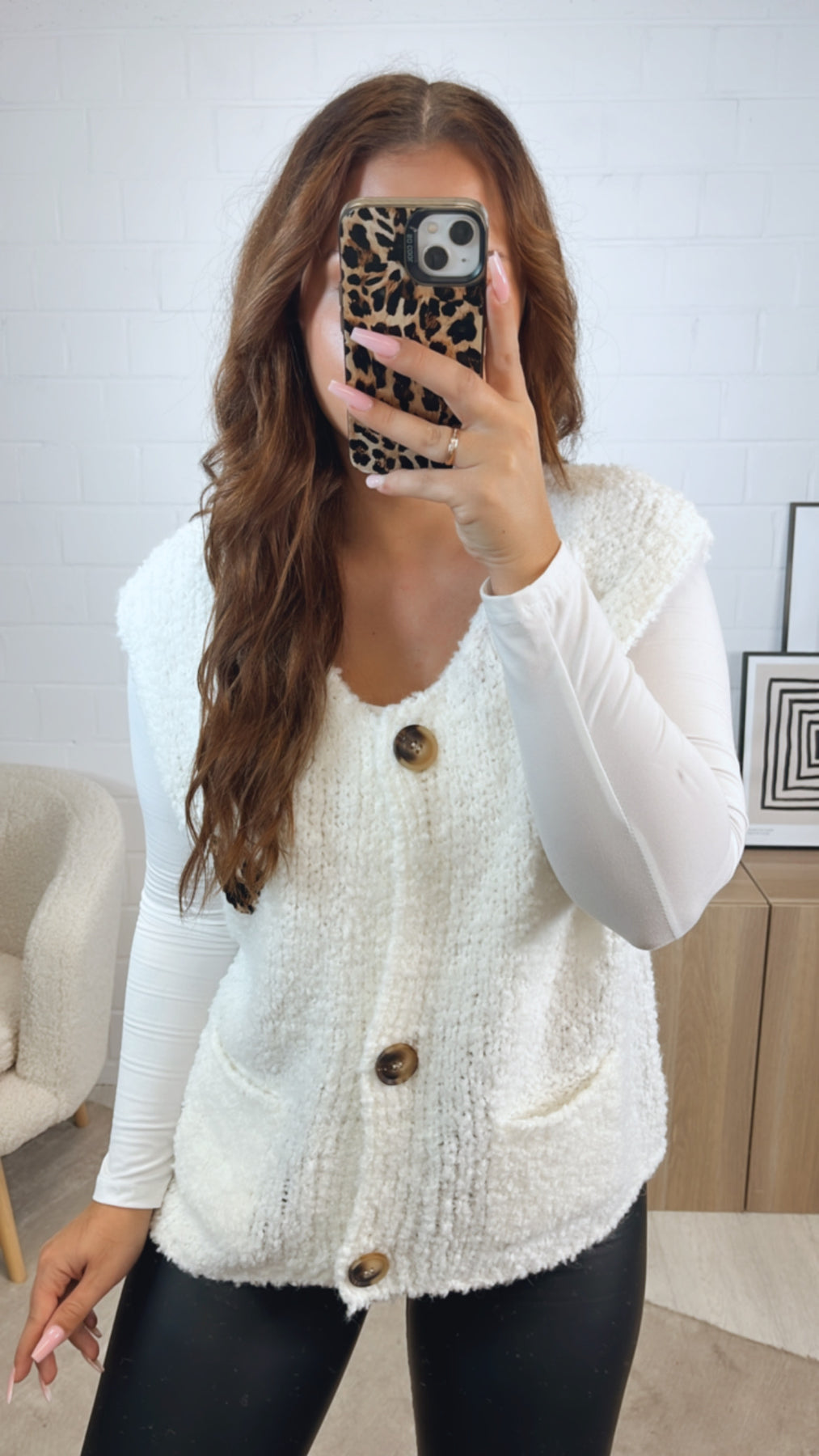 Schöne, weiche Strickweste, welche sich mit einer Knopfleiste variabel offen bzw. geschlossen tragen und kombinieren lässt und in dem angesagten Teddy-Look gearbeitet ist. Durch ihr LeoHerz auf der linken Vorderseite wird sie zudem zu einem absoluten Hingucker. Das Praktische: auf der Vorderseite hat sie außerdem zwei Eingriffstaschen angebracht.