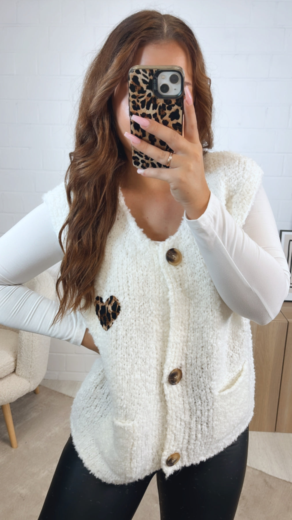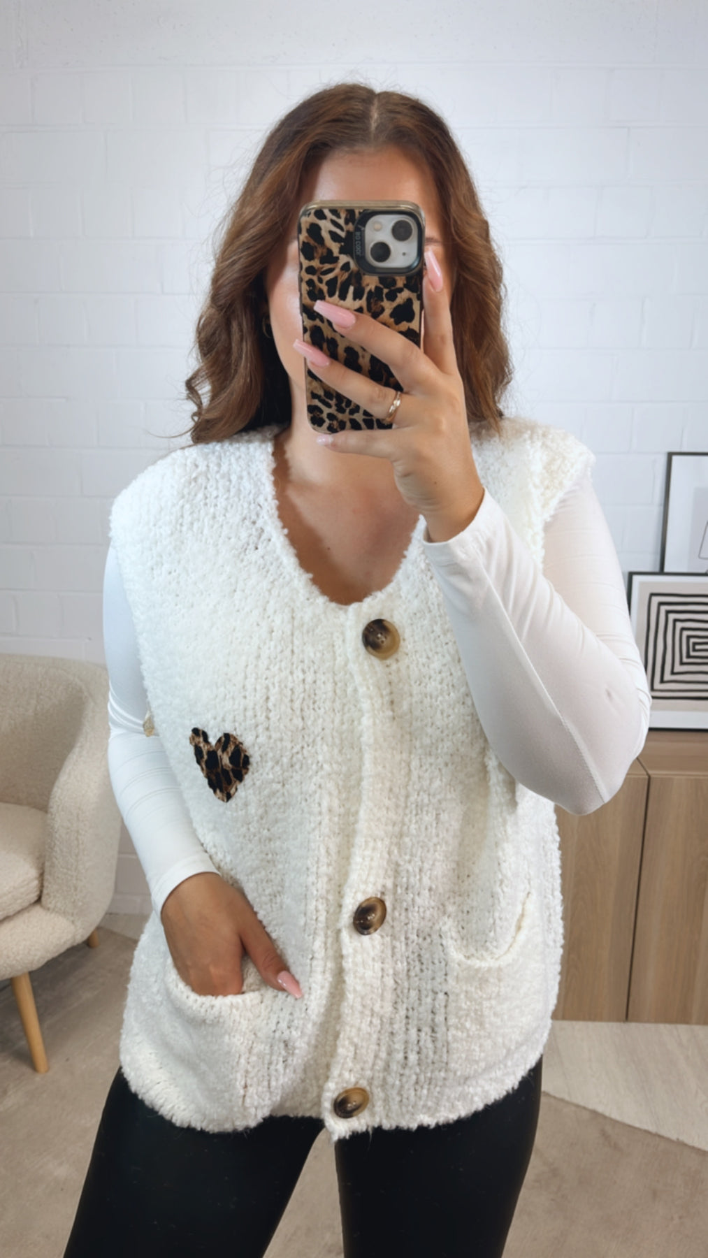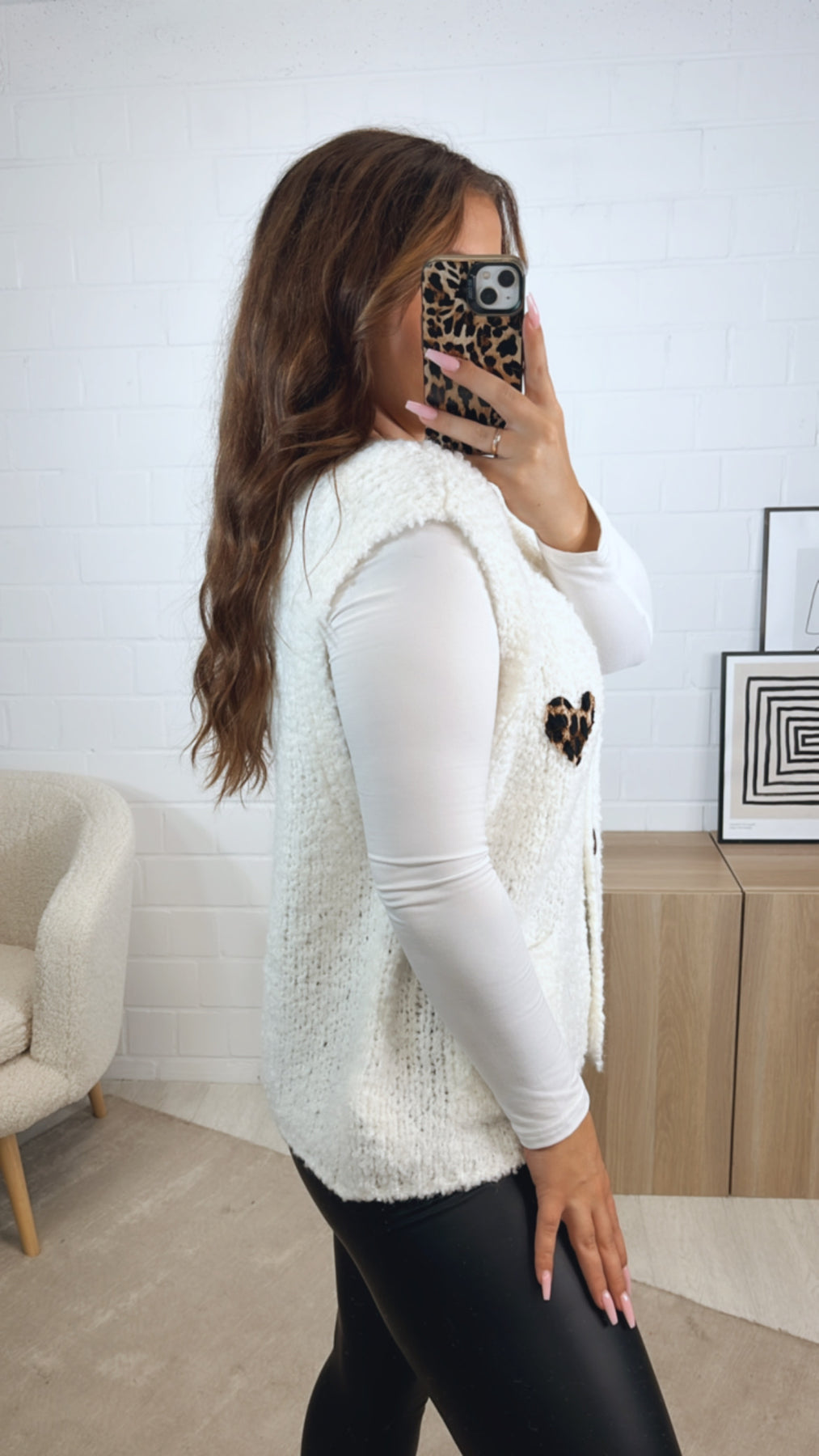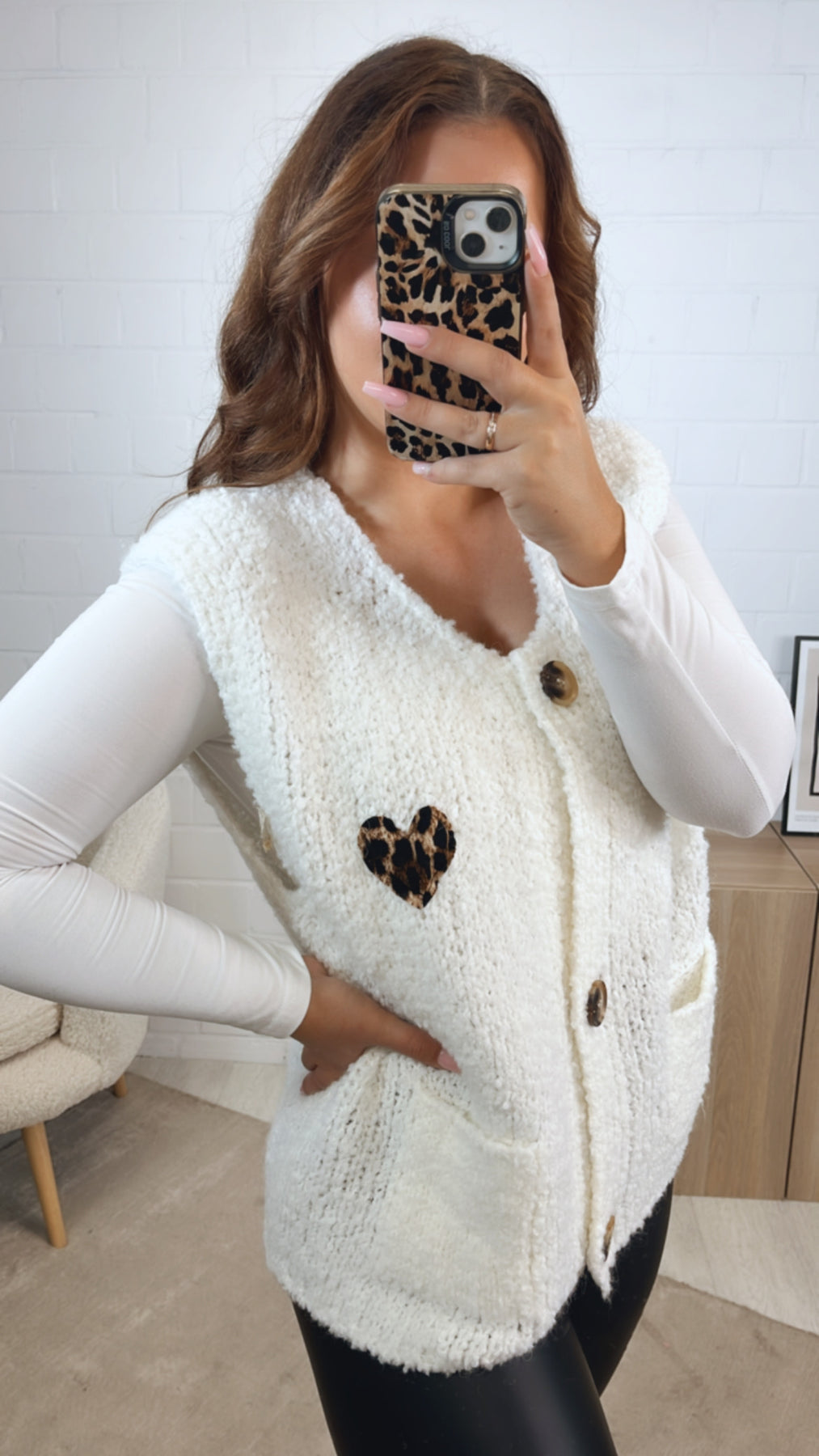 TEDDY Strick Weste mit Leo Herz / weiss Art. 12539