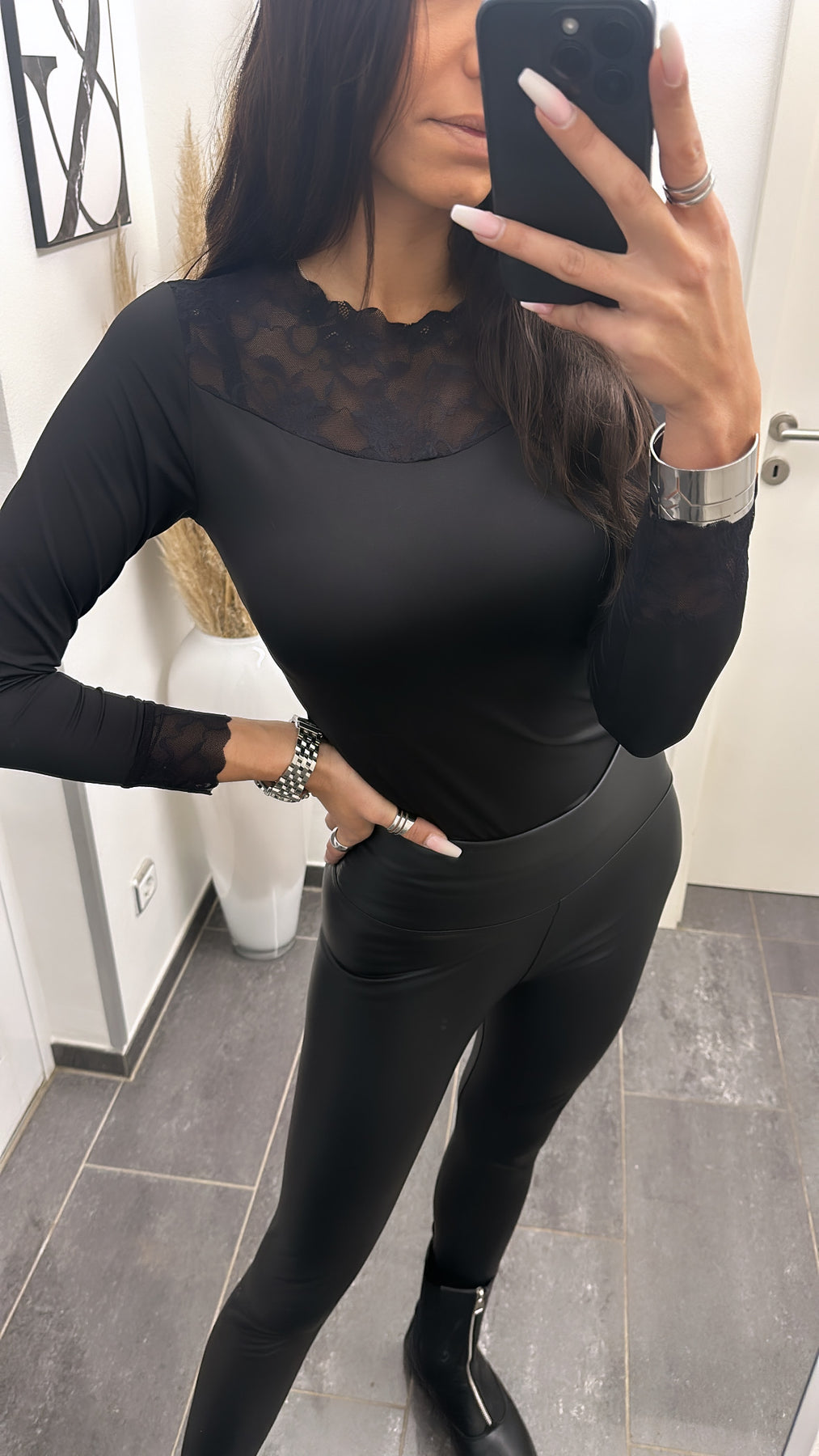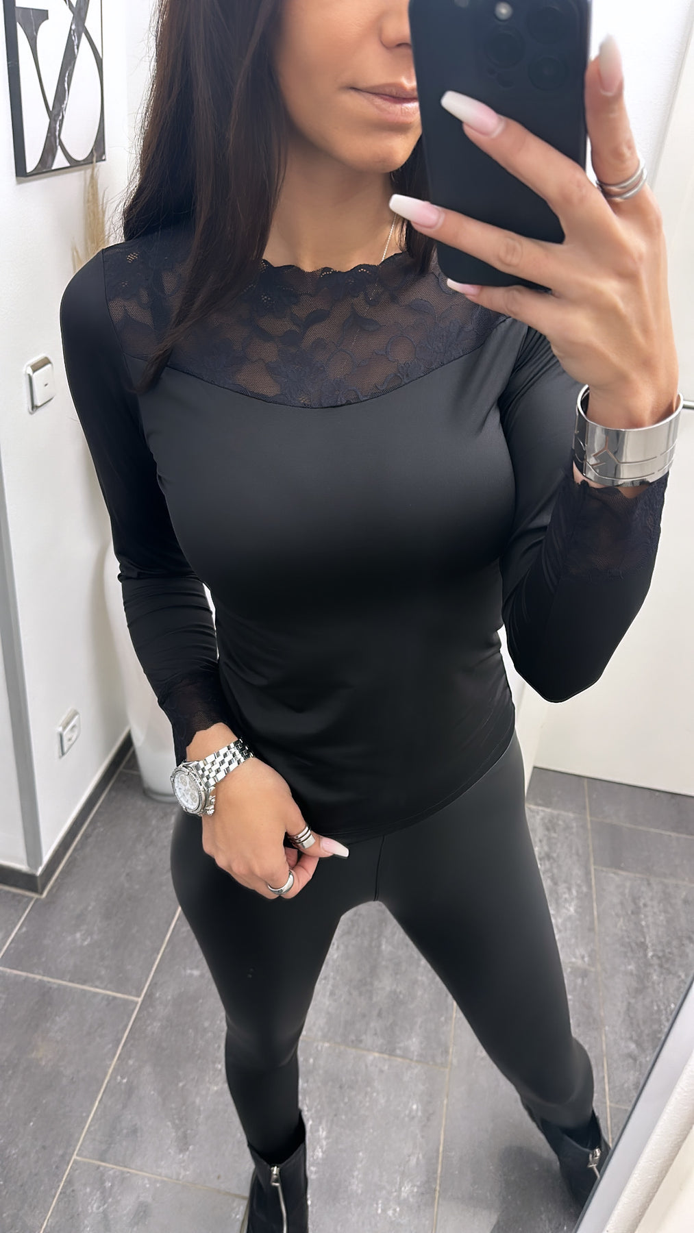 Figurbetones Langarm Oberteil mit Spitze / schwarz Art. 5570