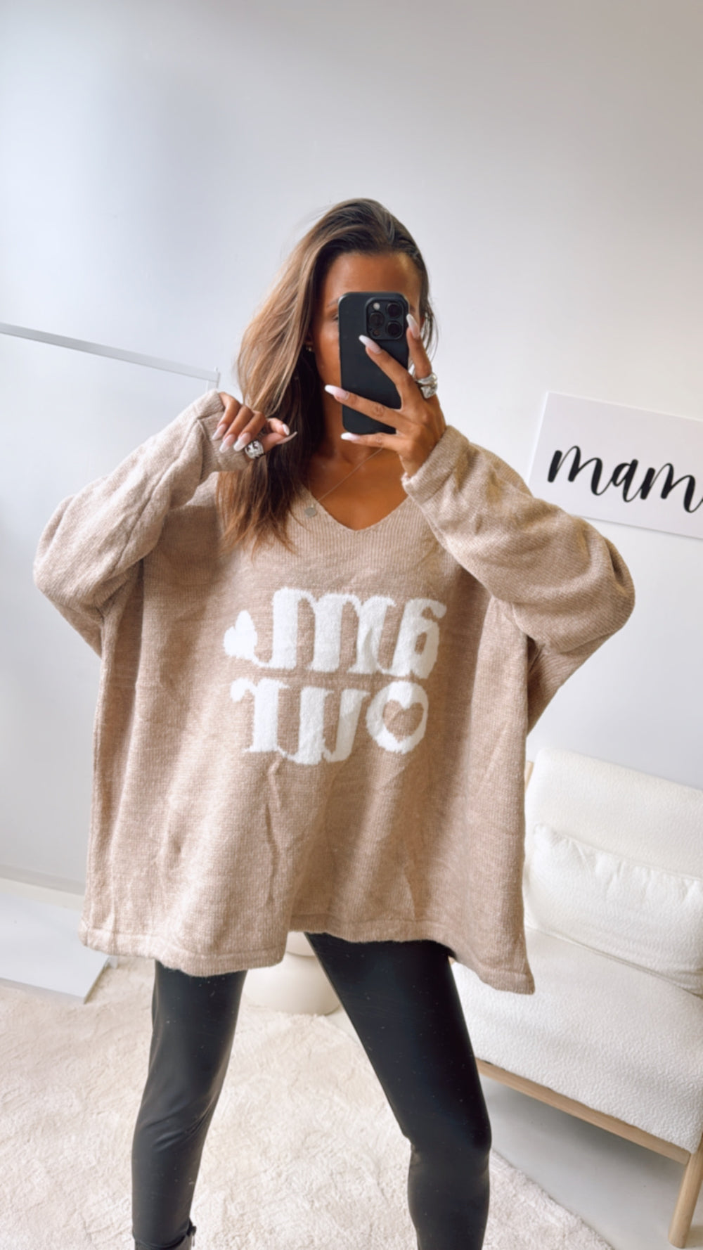 ultra oversize Strick Pullover " Amour " / camel - woll weiß Art. 122318