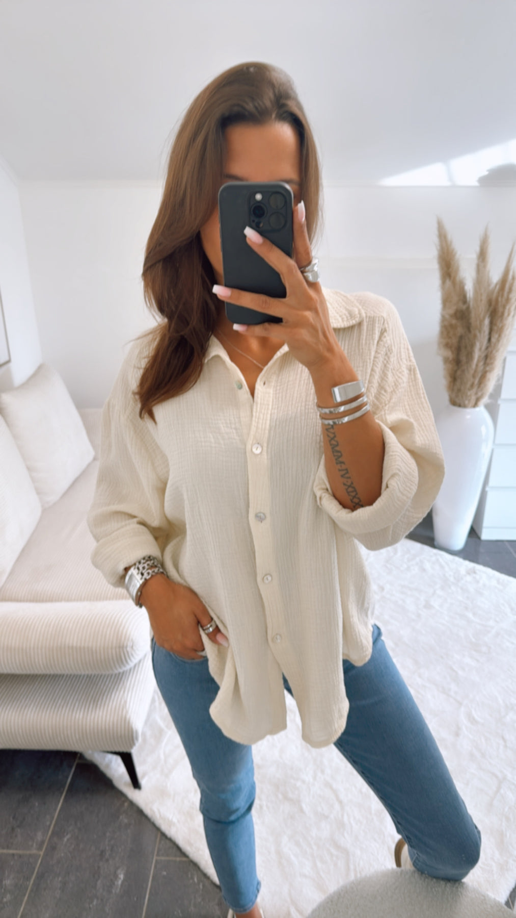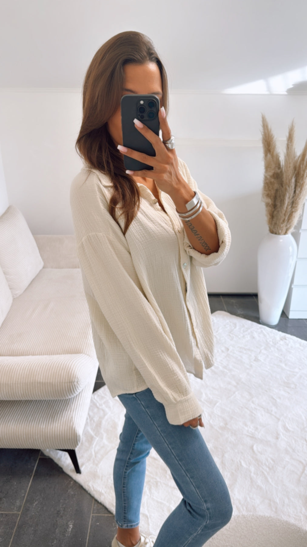 Und das Beste: Die Pflege ist genauso unkompliziert wie der Look. Nach dem Waschen einfach aufhängen, lufttrocknen lassen und schon ist die Bluse wieder einsatzbereit – ganz ohne Bügeln. So bleibt mehr Zeit für die schönen Dinge im Leben.