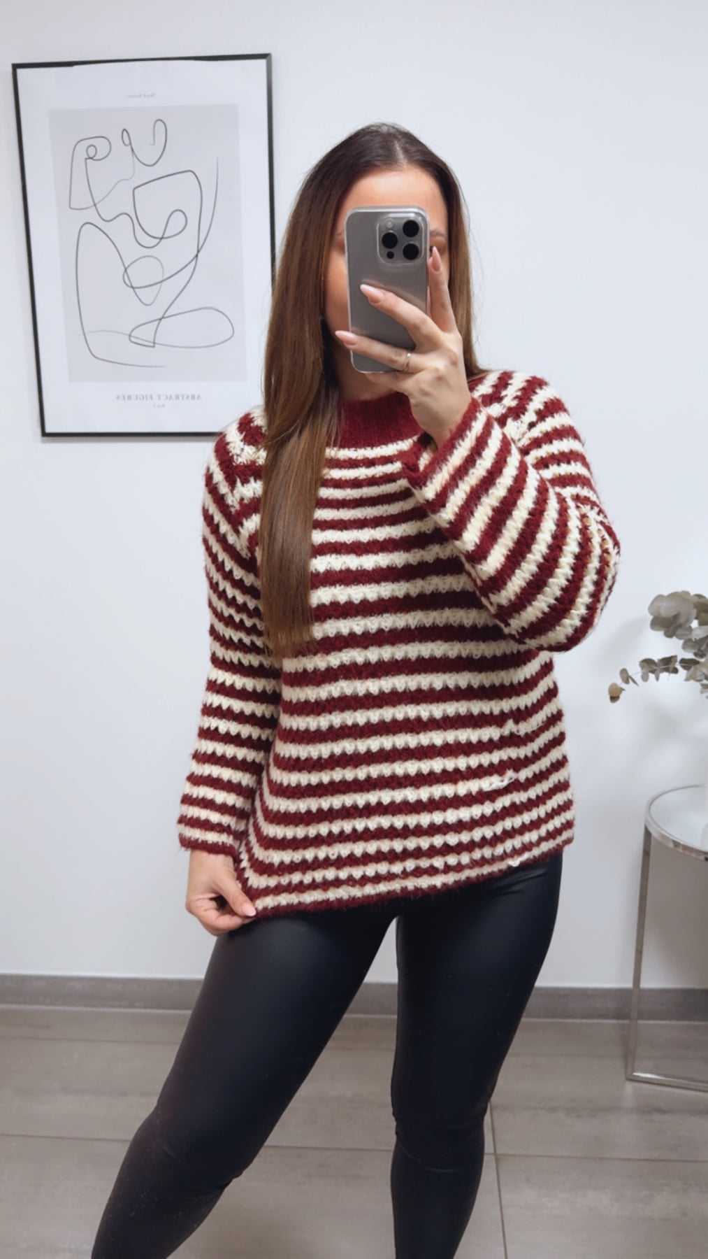 ausgefallener Strick Pullover mit Streifen / bordeaux rot - soft gelb Art. 13300