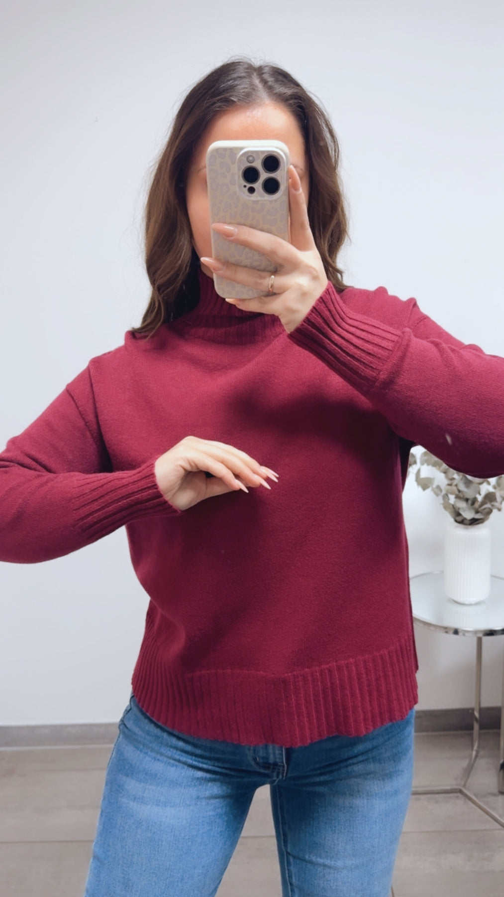 Feiner Strickpullover mit gerippten Akzenten / bordeaux Art.13881