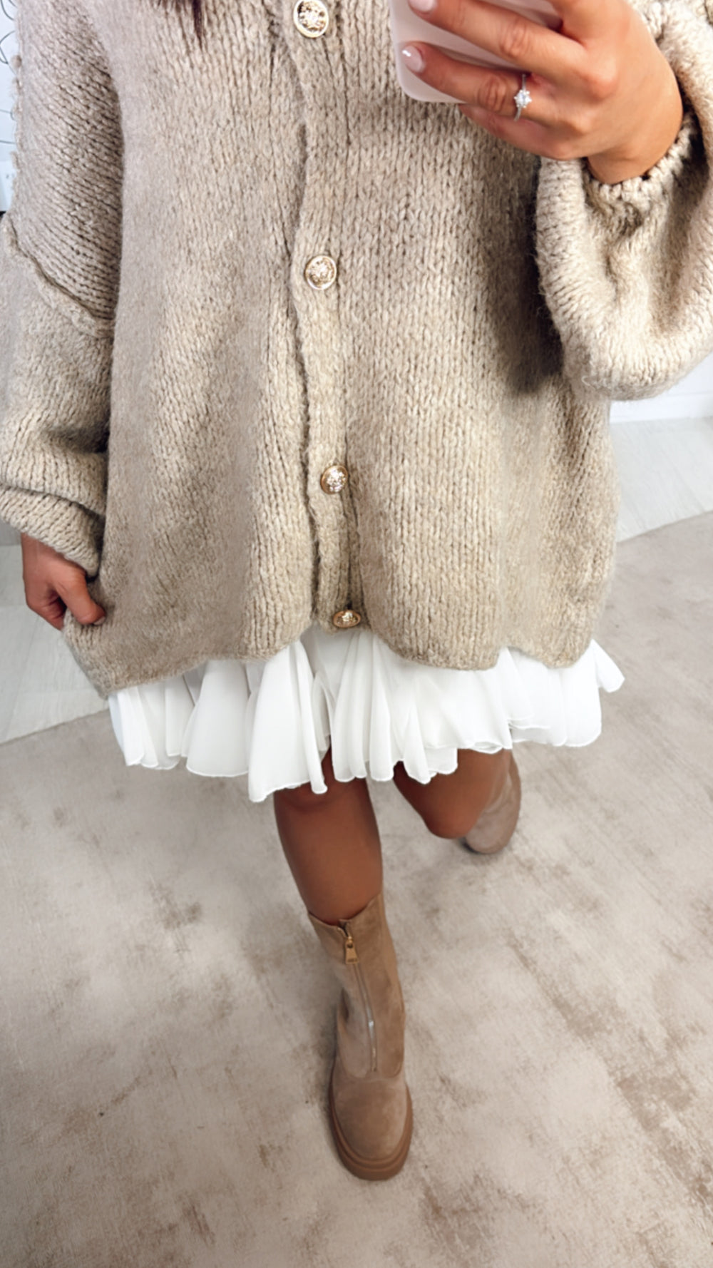 Super süßer und leichter Rock. Aufgrund der kleinen Volant-Applikationen kann er auch super einfach sehr schick und zu besseren Anlässen getragen und kombiniert werden. Sowohl im Sommer, als auch im Herbst und Winter kann er getragen werden. Ob ohne Strumpfhose mit offenen, sommerlichen Schuhen, oder im Herbst und Winter mit Strumpfhose und Boots oder Stiefeln. Einfach vielseitig einsetzt- und tragbar. Das Praktische an ihm: Er hat einen eingenähten Unterstoff. Das bedeutet, dass Du keine Angst haben musst, dass er blickdurchlässig ist und man etwas sehen könnte, was nicht gesehen werden soll. Super safe!