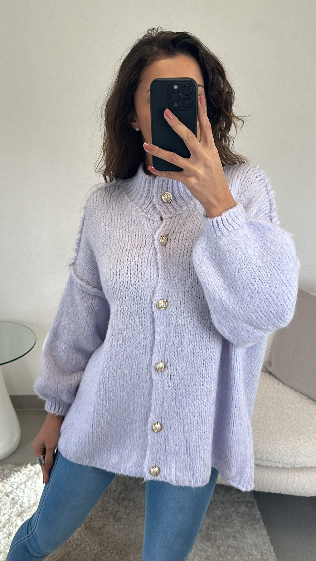 Kuschel Cardigan mit goldenen Knöpfen / flieder Art. 5568